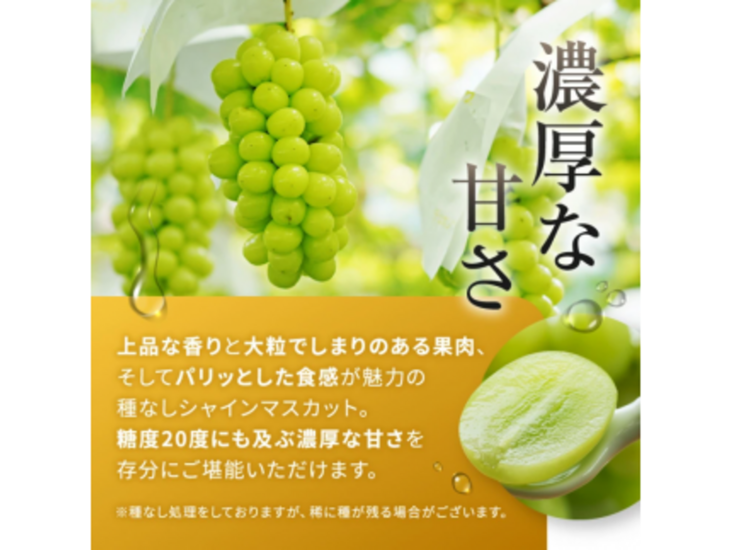 種がなく皮ごと食べられて、大粒で美しく、上品な香りと濃厚な甘みが味わえるシャインマスカットはまさにぶどうの〈いいとこどり〉の品種。
