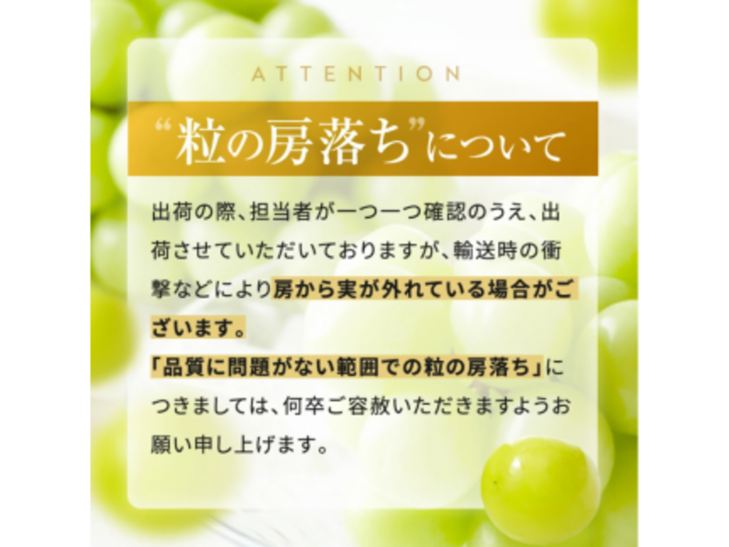 ※輸送中の振動などで房から実が外れたり、実が割れる場合がございます。あらかじめご了承ください。