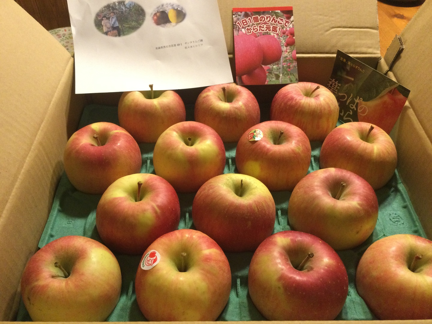 5キロ箱で、りんごの大きさによりますが、18個前後入りです。