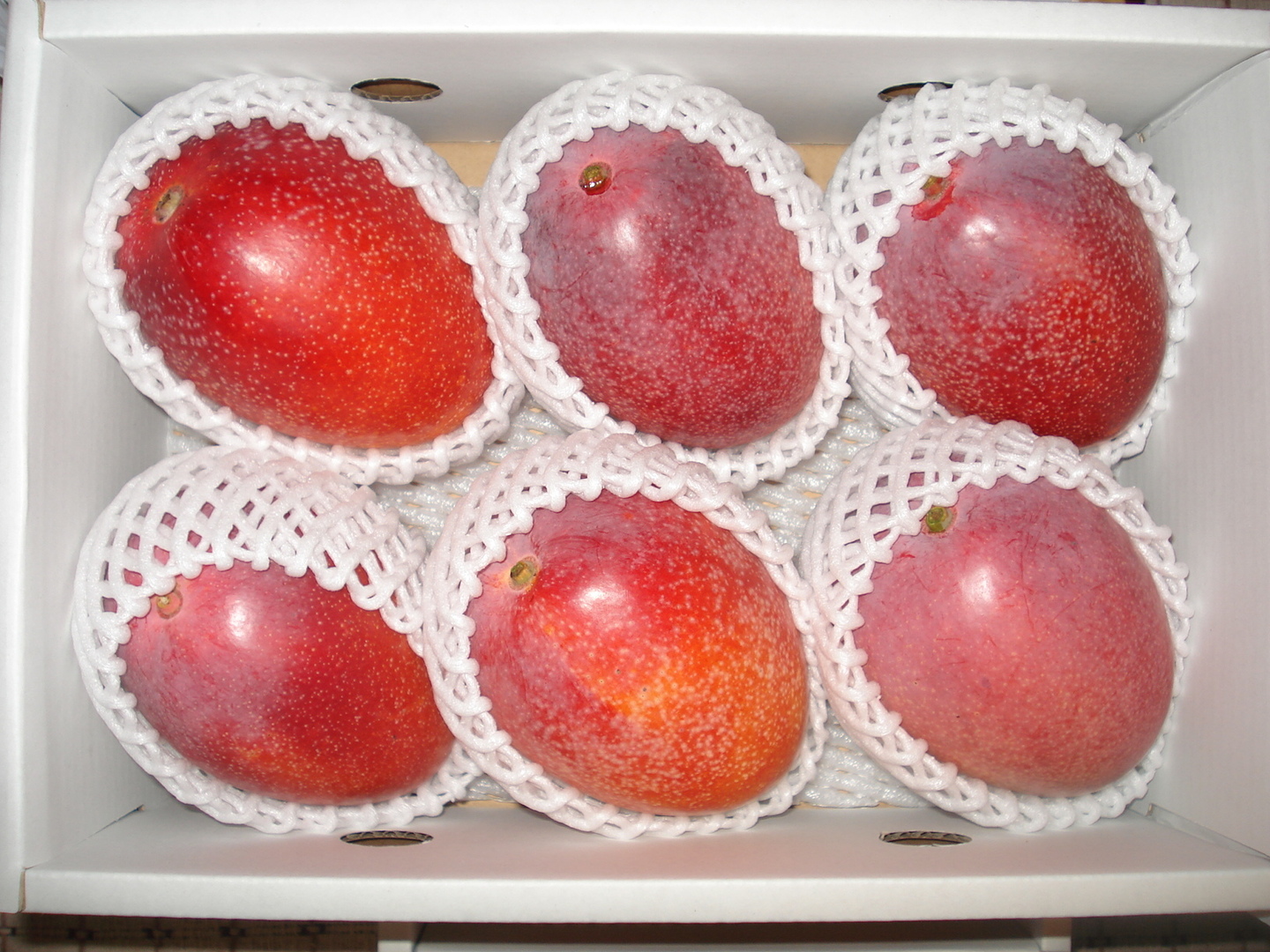 マンゴーが届きましたら、箱のふたを開けて果実の様子をチェックしてください。