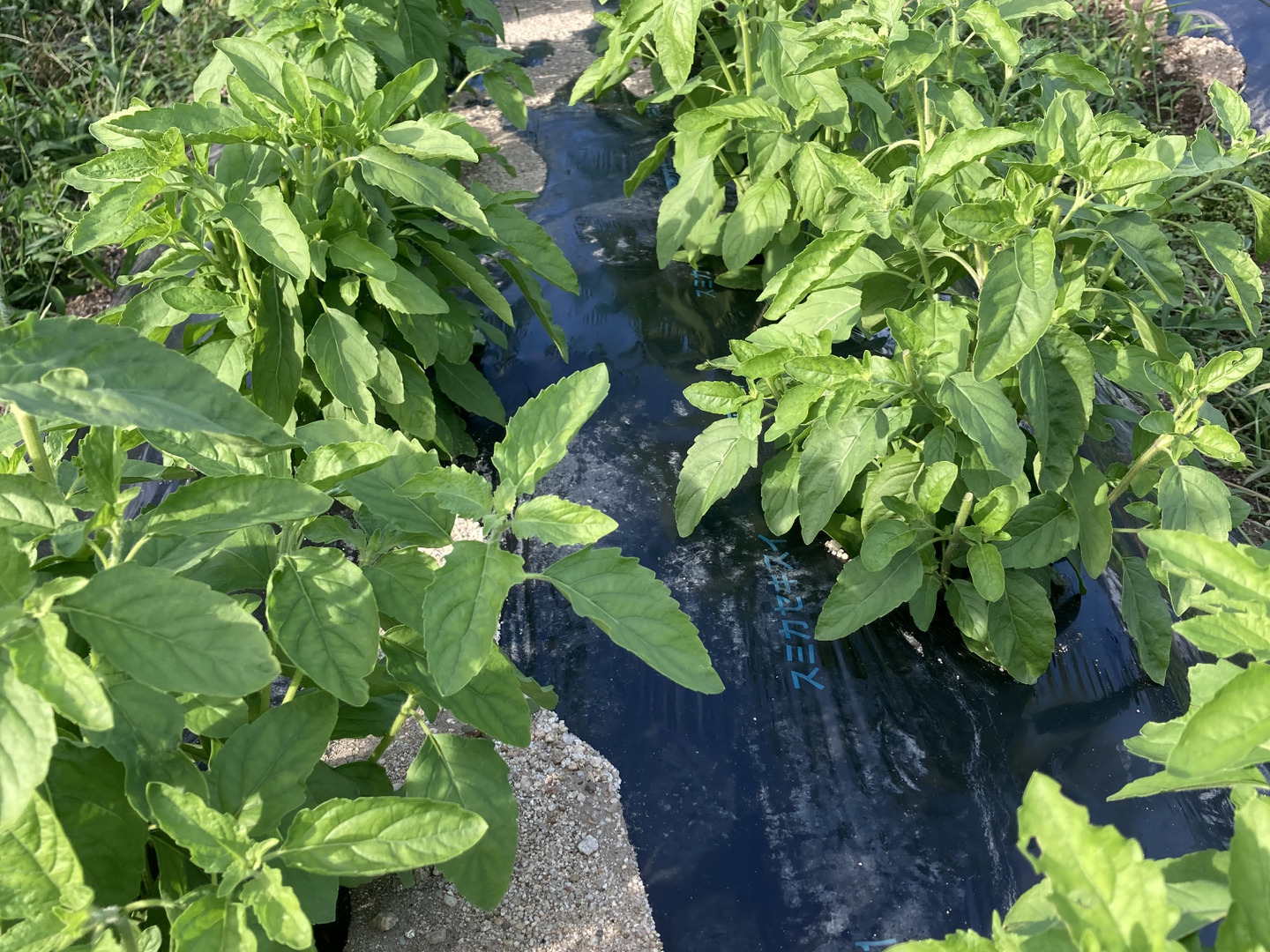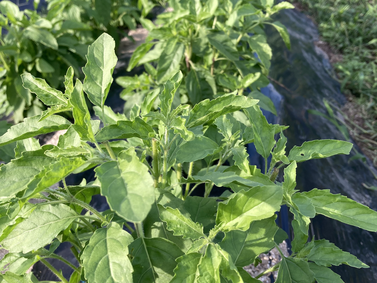 路地栽培で太陽の陽と微生物の力を借りて育った元気なバジルです。