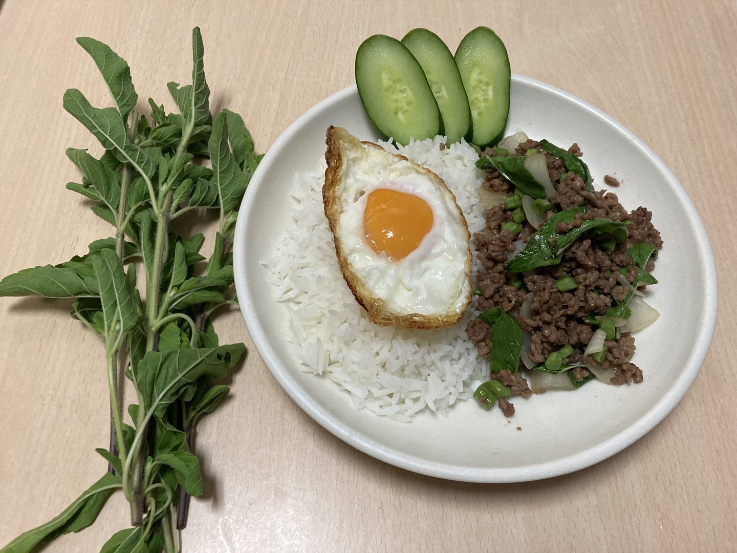 タイ語では「ガパオ」กะเพราと呼ばれるバジルです。タイ料理の定番ガパオライスにはこのバジルがたっぷり使用されています。