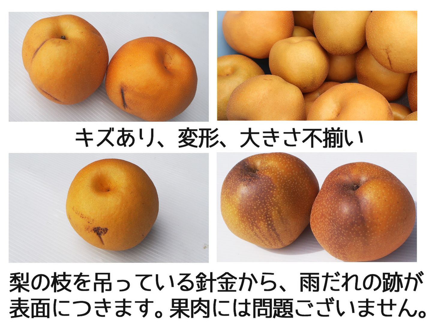 梨を吊っている針金から雨の降った後などに表面に、黒くつきます。切ってみると果肉には問題ございません。