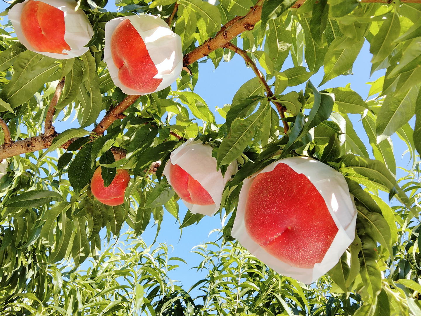 【農薬節約栽培】慣行栽培より20%農薬を少なく栽培しております❗桃の袋掛け以降、収穫するまでは農薬は使用しておりません❗(除草剤は除きます)