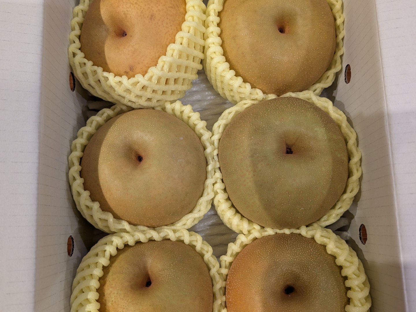 梨を吊っている針金から雨の降った後などに表面に、黒くつきます。切ってみると果肉には問題ございません。