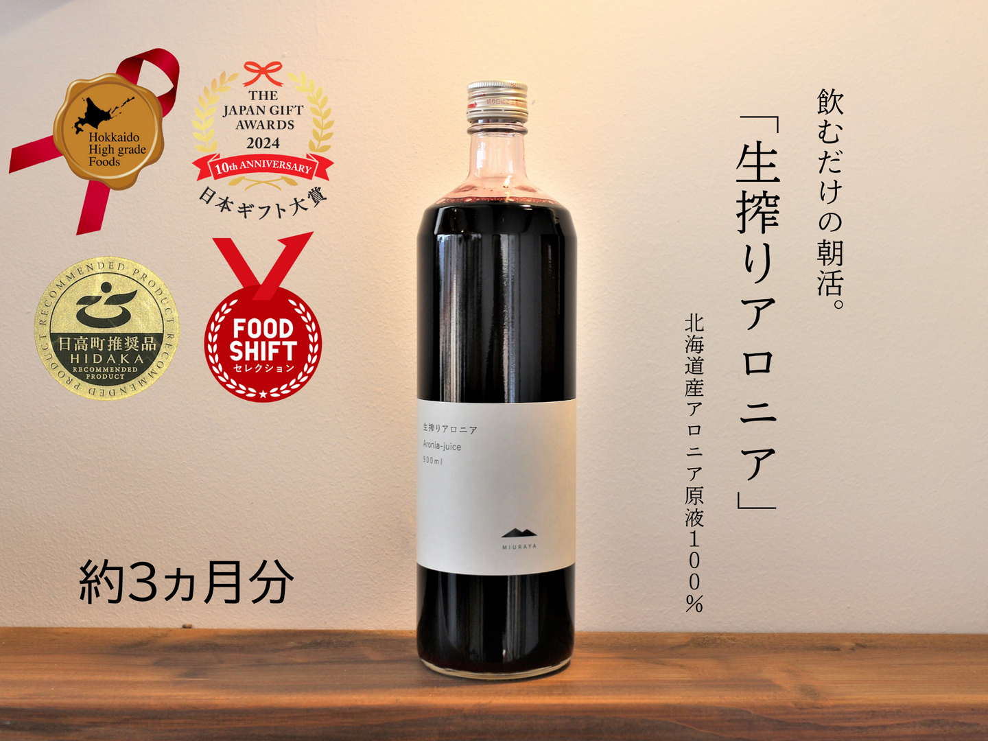 こちらの商品は生搾りアロニア3本セットとなります。