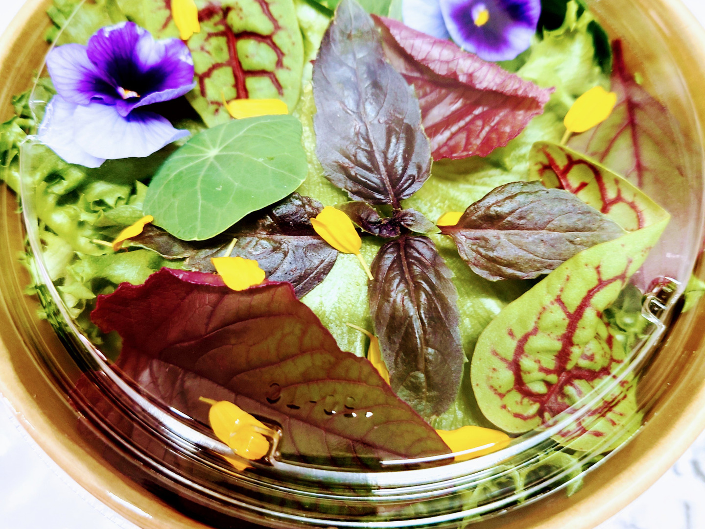 たくさんの品種からサラダにぴったりなレタスを数種類選定。見た目や食感や味の違いをお楽しみください。アクアポニックス農法で育てたハーブとエディブルフラワーはとっても美味しいのでサラダのアクセントにぴったりです。