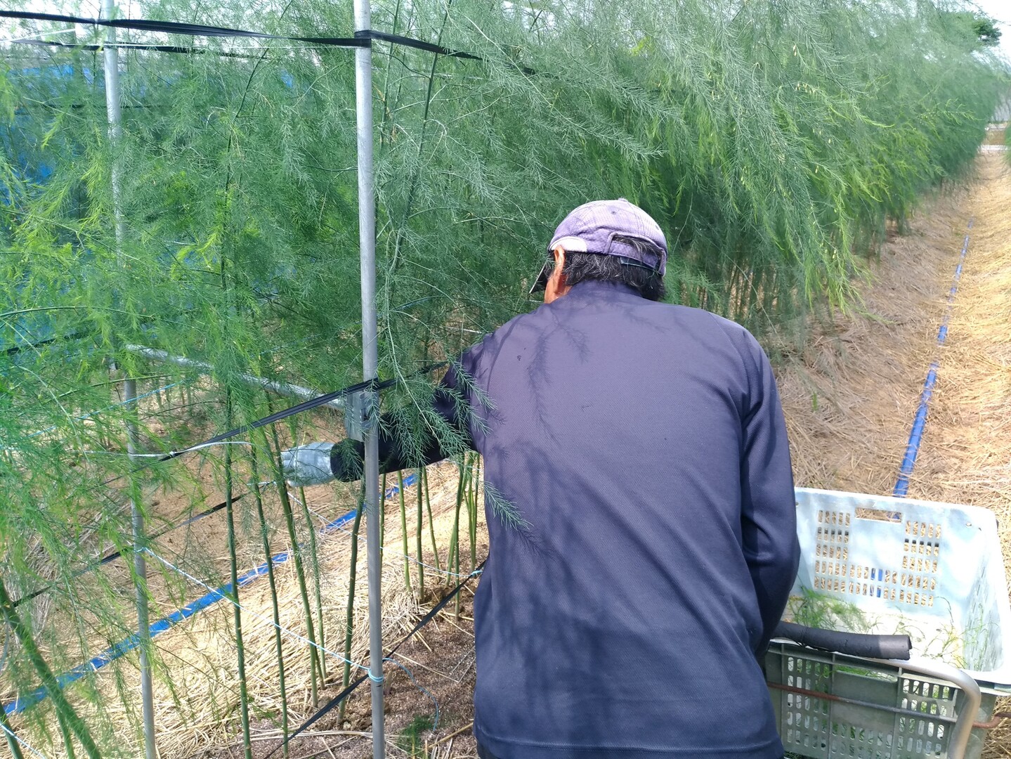 露地栽培のアスパラガスはいつも病気との闘いです。皆さんに美味しいアスパラガスをお届けできるよう、丹念に世話をしています。。