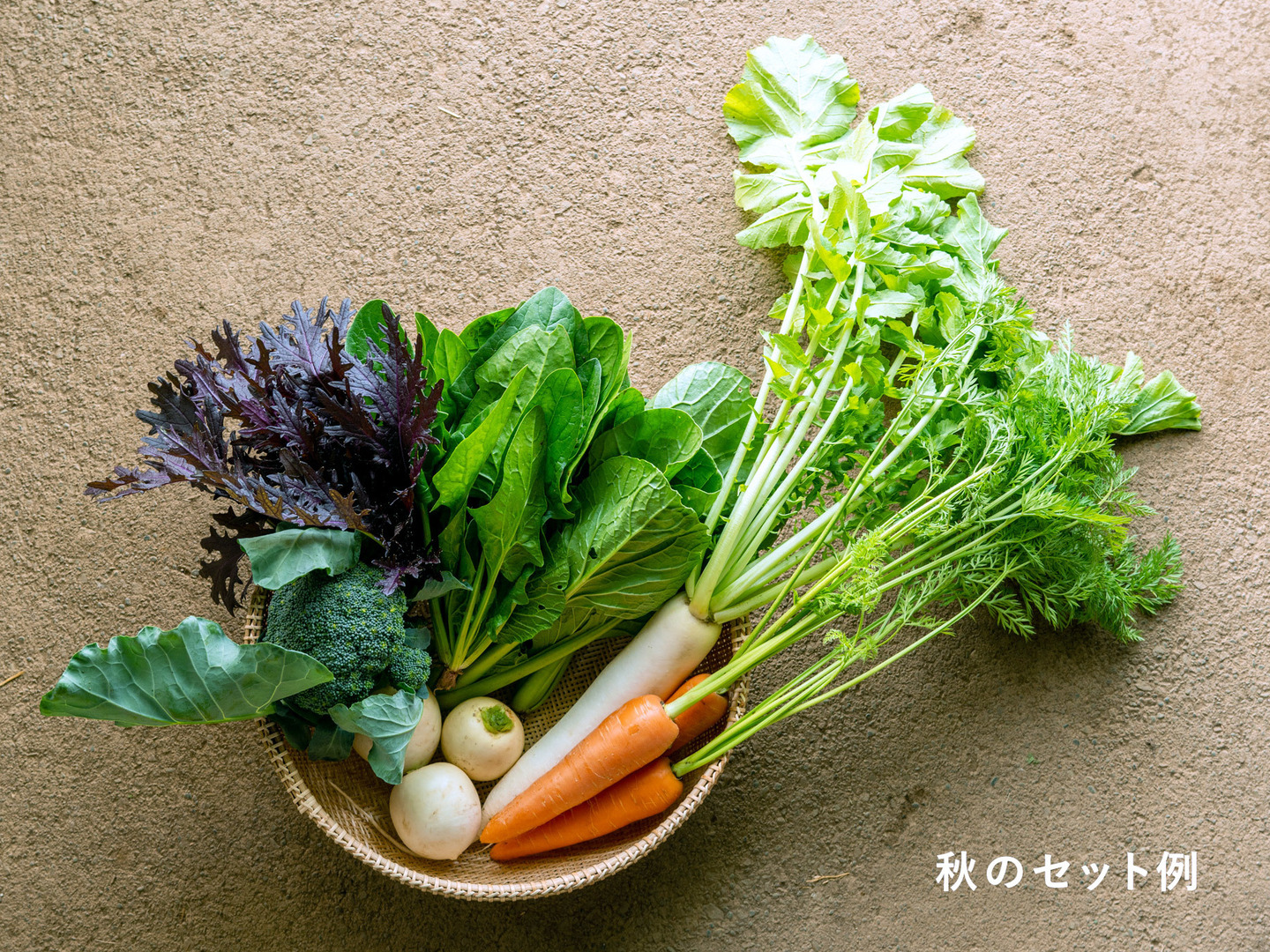 商品について あわせ買い対象 同生産者の別の「あわせ買い対象」商品と一緒にご注文いただくと、送料をまとめてお届けできる場合があります。 内容 旬の野菜 8品〜10品程度 発送 日本郵便 送料 ¥ クール便(冷蔵) + ¥ 675 数量1点ごとに送料が発生します。 種別 野菜セット 産地 東京都 農薬化学肥料不使用 野菜セット 東京都x野菜セット 商品説明 ※写真はイメージです。時期によって変動します。栽培期間中、農薬や化学肥料を使わずに育てた、その季節に収穫できる安心で新鮮な野菜をお届けします。※お届けする野菜の種類・品数は、時期によって変わります。かぼちゃなど大きい野菜が入る時には、上記の品数より少なくなることもあります。野菜が本来持っている力で育っていけるように、農薬や化学肥料は使わず、堆肥の量も少なくしています。厳選した堆肥や緑肥などを使って土づくりをして、じっくりと育てることで、味のある野菜になっていきます。環境にも人にも優しい野菜づくりを心がけています。◎セットの野菜例●春(4月〜6月)のらぼう菜 / にんじん / かぶ / じゃがいも / レタス / ズッキーニ / パクチー / ルッコラ / 小松菜 / ビーツ●夏(7月〜9月)なす / コリンキーかぼちゃ / 空芯菜 / きゅうり / 万願寺とうがらし / 大葉 / ミニトマト / オクラ●秋(10月〜12月)バターナッツかぼちゃ / ルッコラ / にんじん / レタス / さつまいも / さといも / パクチー / サラダほうれん草 / かつお菜 / 白菜 / 水菜●冬(1月〜3月)じゃがいも / かぶ / 大根 / さつまいも / ブロッコリー / 白菜 / ねぎ / ほうれん草 / 小松菜 もっと見る この商品のことをお友達にもシェアしませんか ポスト シェア