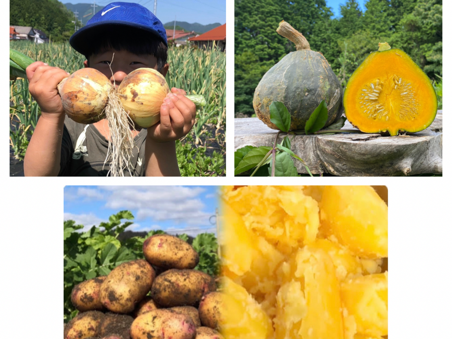8kg3セット"農家の中でも『幻』の固定種セット!毎年完売!本当に美味しいじゃがいも!自然栽培のかぼちゃ!農薬不使用!無肥料!美味しい玉ねぎ