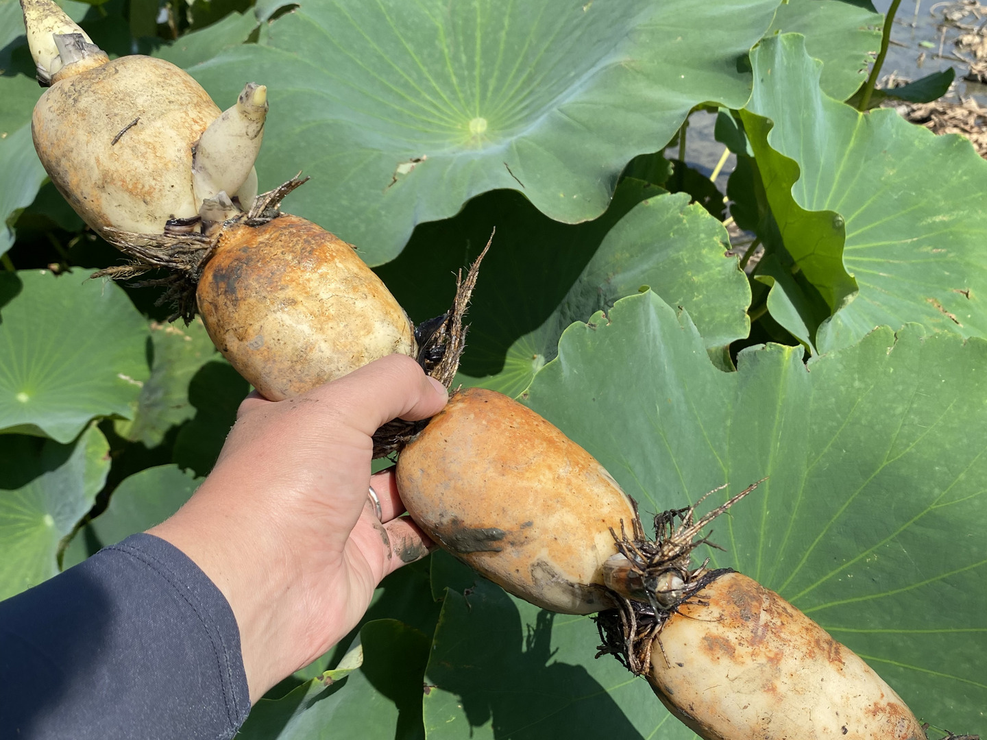 農薬節減率50%以下で栽培しており、れんこんの旨みと甘みを最大限に引き出しています‼︎美味しさの秘密は有機肥料をふんだんに使用していますので、土が豊かでれんこんものびのびと育っています🪷