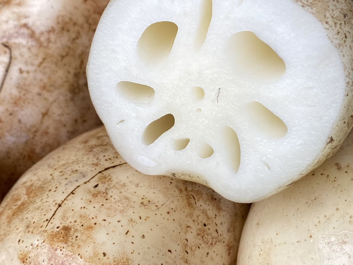 シャキシャキ食感と甘みを感じされる品種で、見た目は丸々としていて中身は真っ白でキレイなれんこんです‼︎