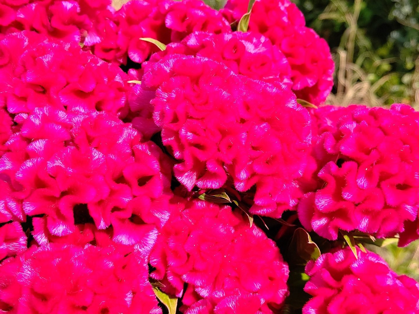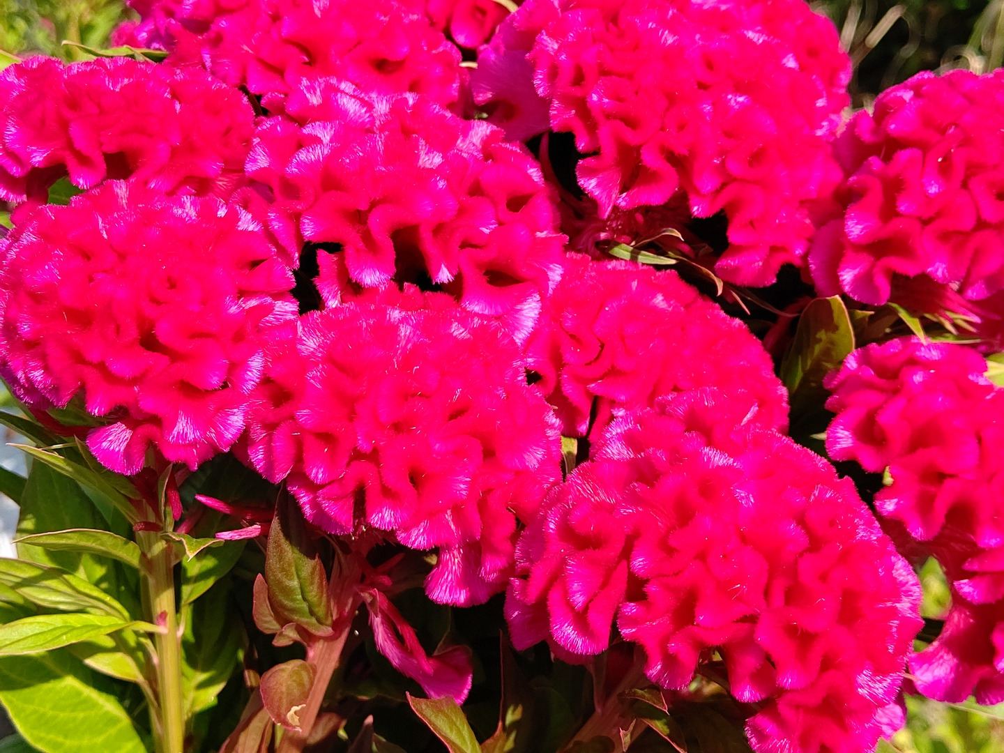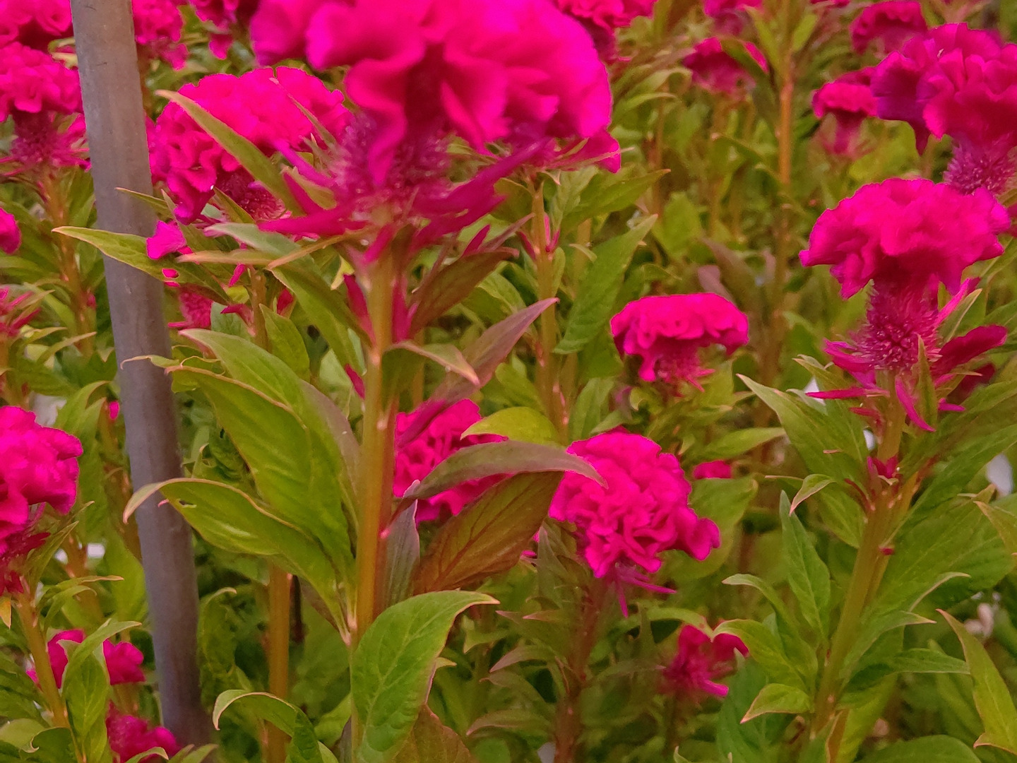 ぼんぼりのように花頭は丸く、とても明るい赤色をしています。