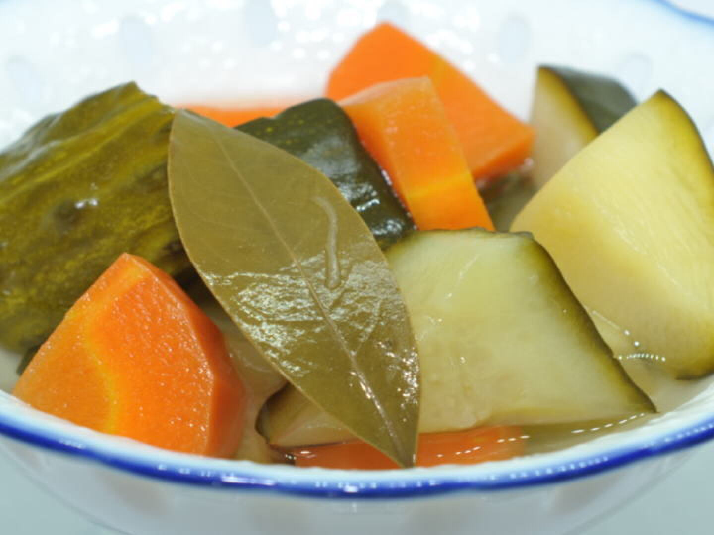 原材料 きゅうり 大根 にんじん、漬け原材料(穀物酢(小麦を含む)、砂糖、塩、ローリエ、タイム)