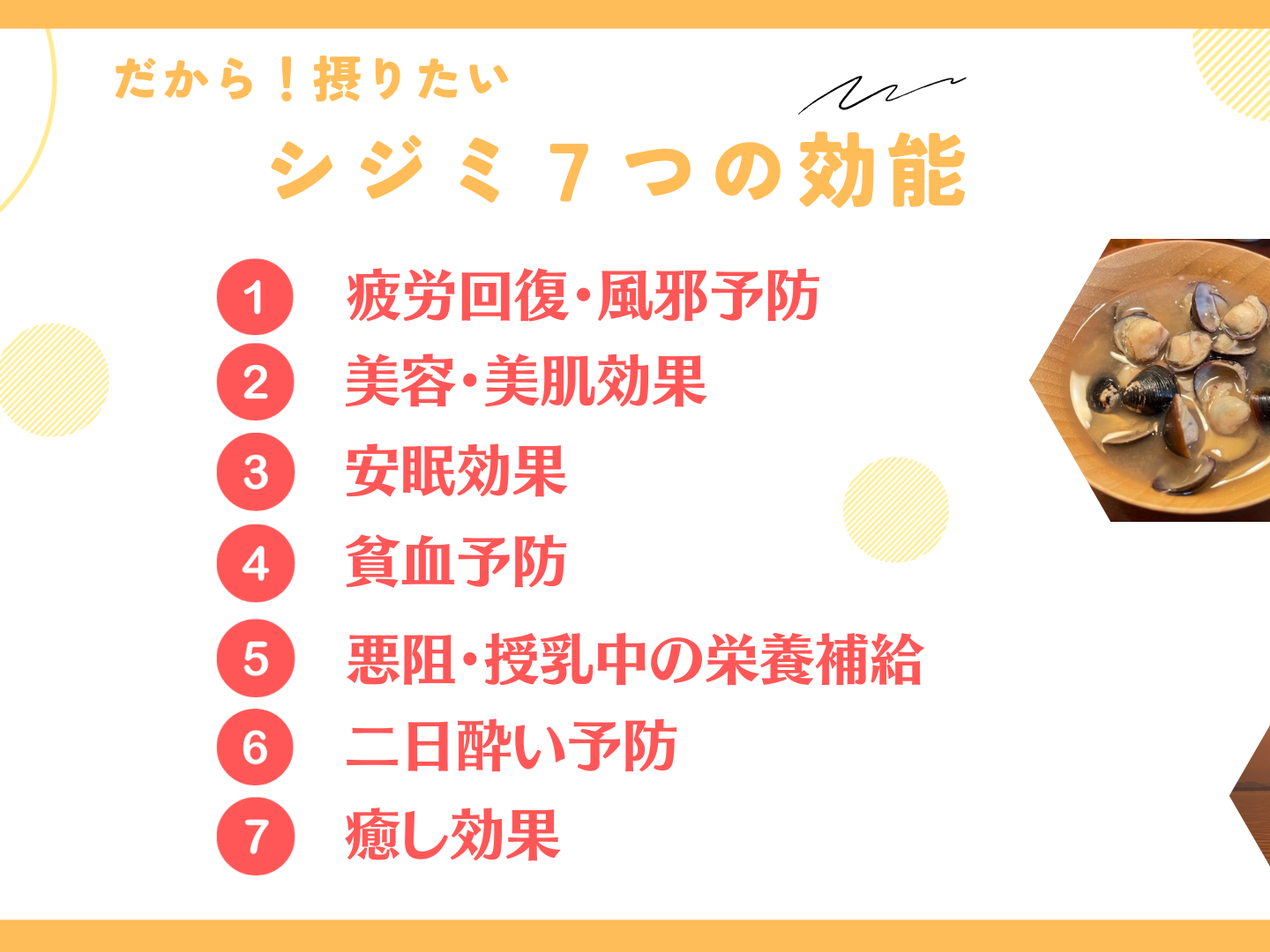 - 3 だから!摂りたい。シジミ7つの効能