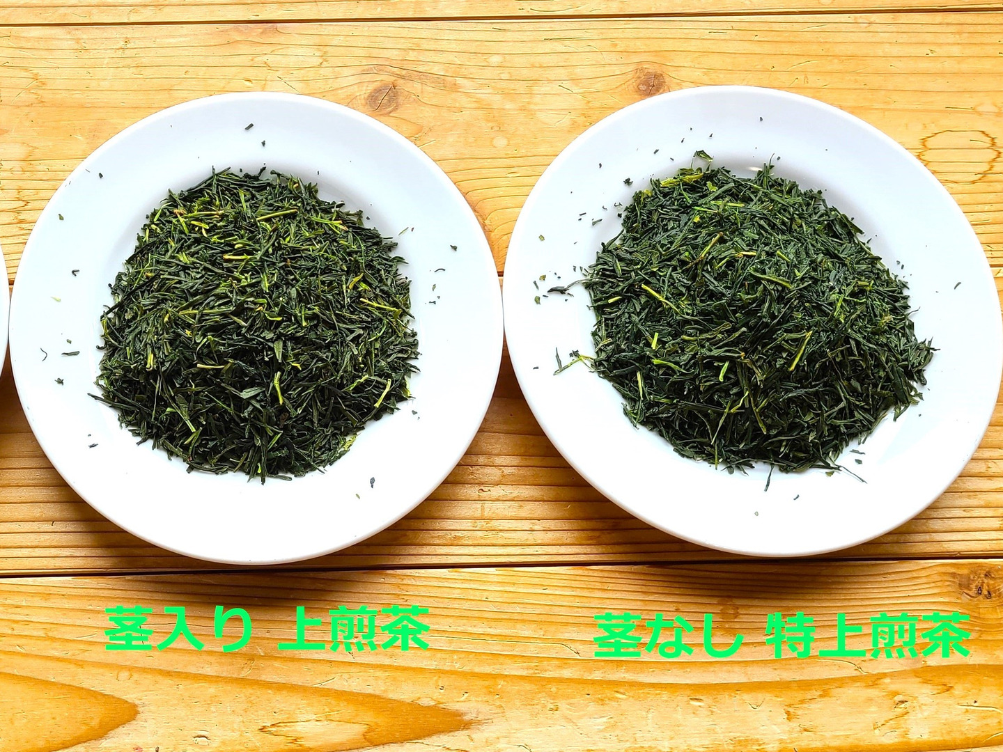 茎が多めに混ざっているものは上煎茶、大きめな茎は除いたものを特上煎茶とさせていただきます。香りや味が濃い目に出やすいものになっています。