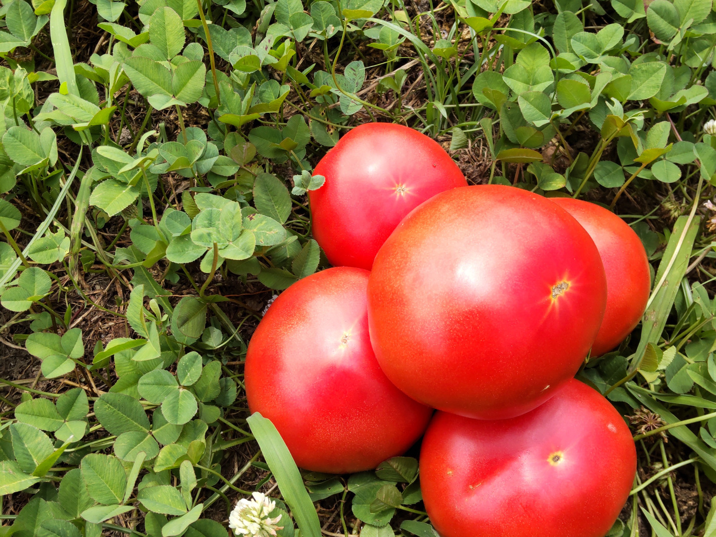 化学肥料だけでなく、堆肥等有機質肥料も薬剤も使わずに自然のちからで育った、固定種の大玉トマトです^^;