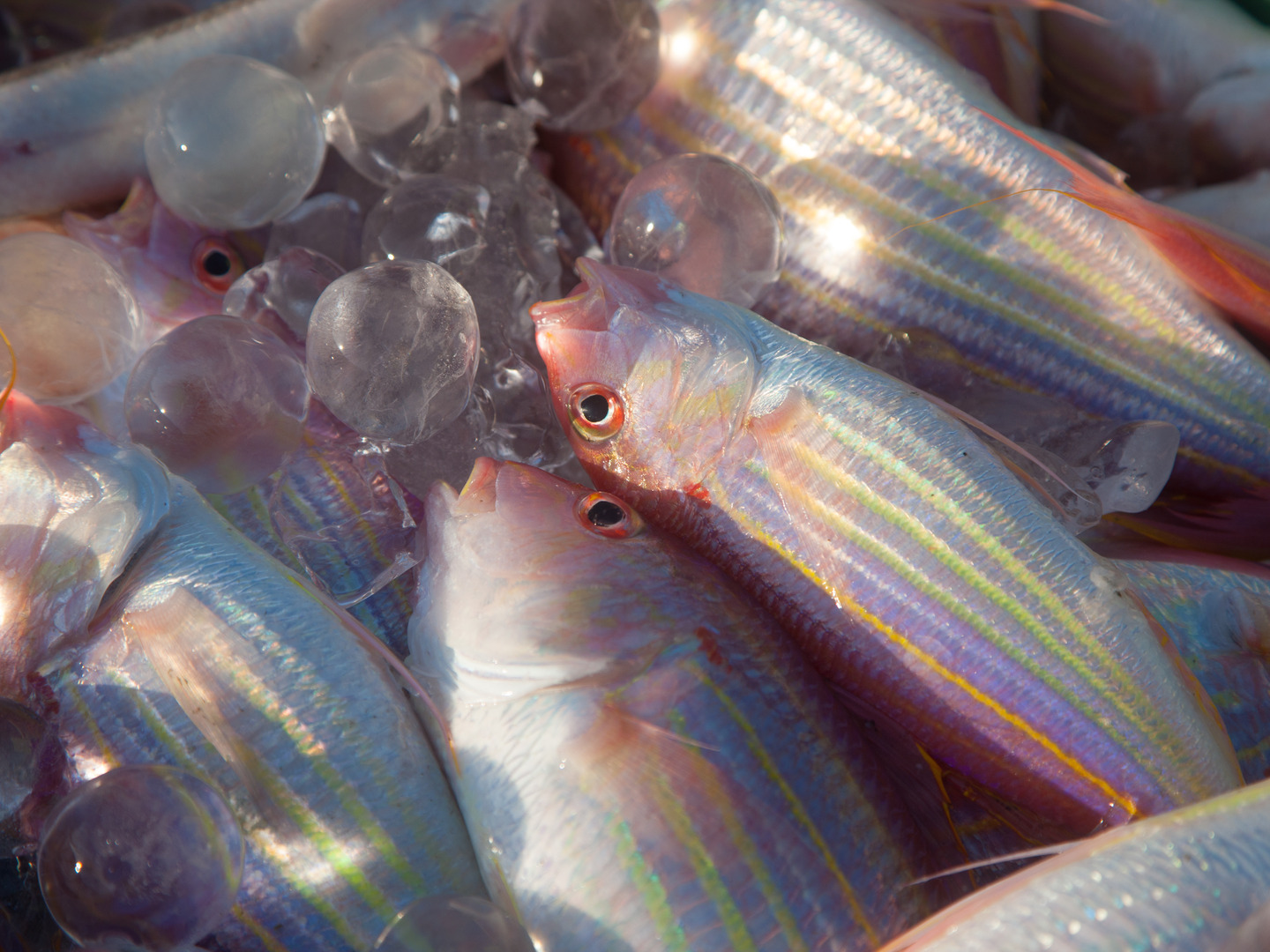 真鯛お刺身サク100g、鰤お刺身サク150g、あおさのり20g、地魚2匹