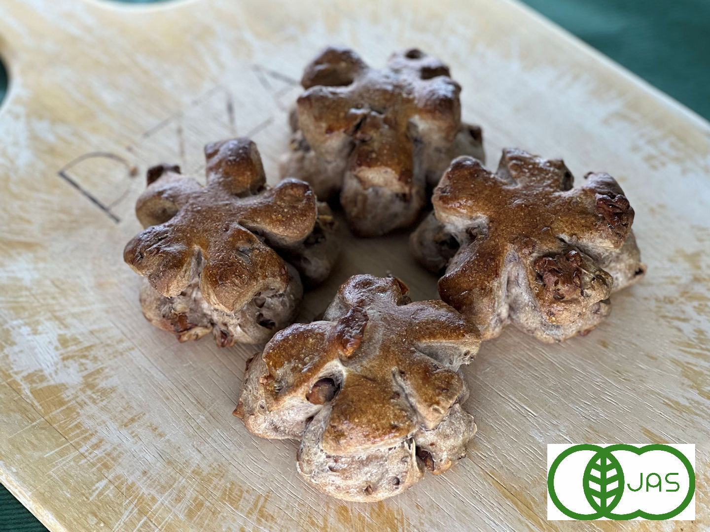 全部有機!Singleパン㉕:麦の栽培から一貫生産 自然栽培有機小麦の有機くるみパン4個【定期会員様へおすすめ】