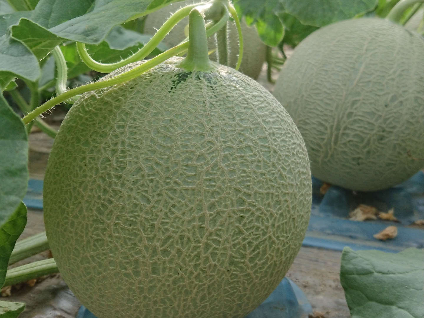 (注※画像にありますメロンの頭にあるT字のツルは現在つけておりません)