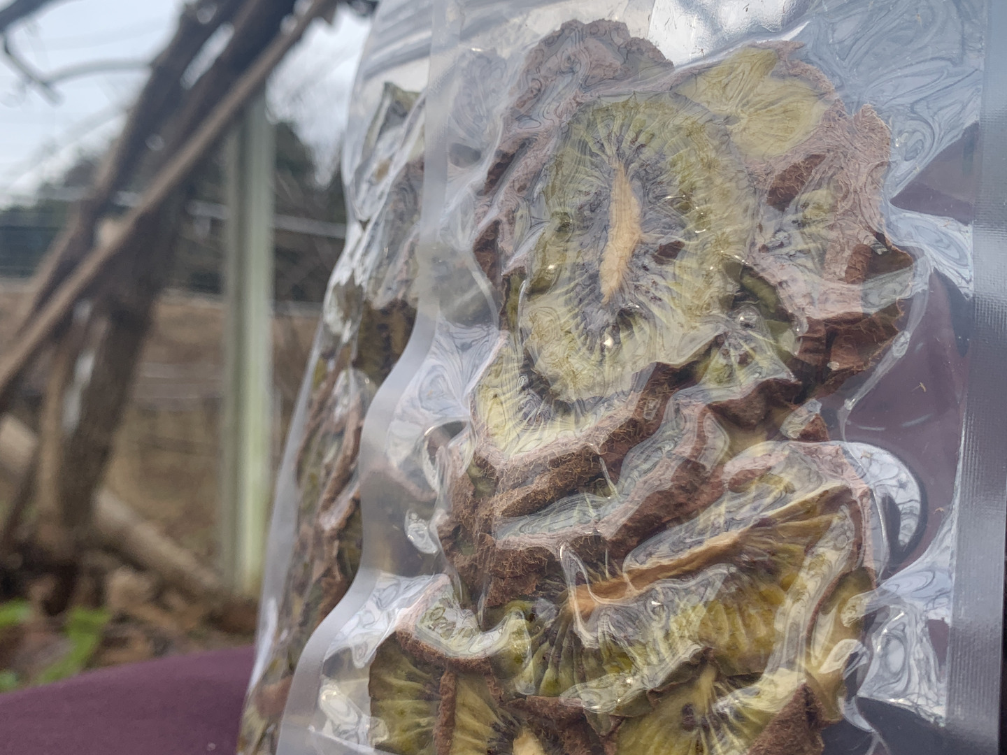 農薬・化学肥料不使用で育てたキウイを丁寧に皮ごと乾燥させることで、深みのある味わいに仕上がりました。