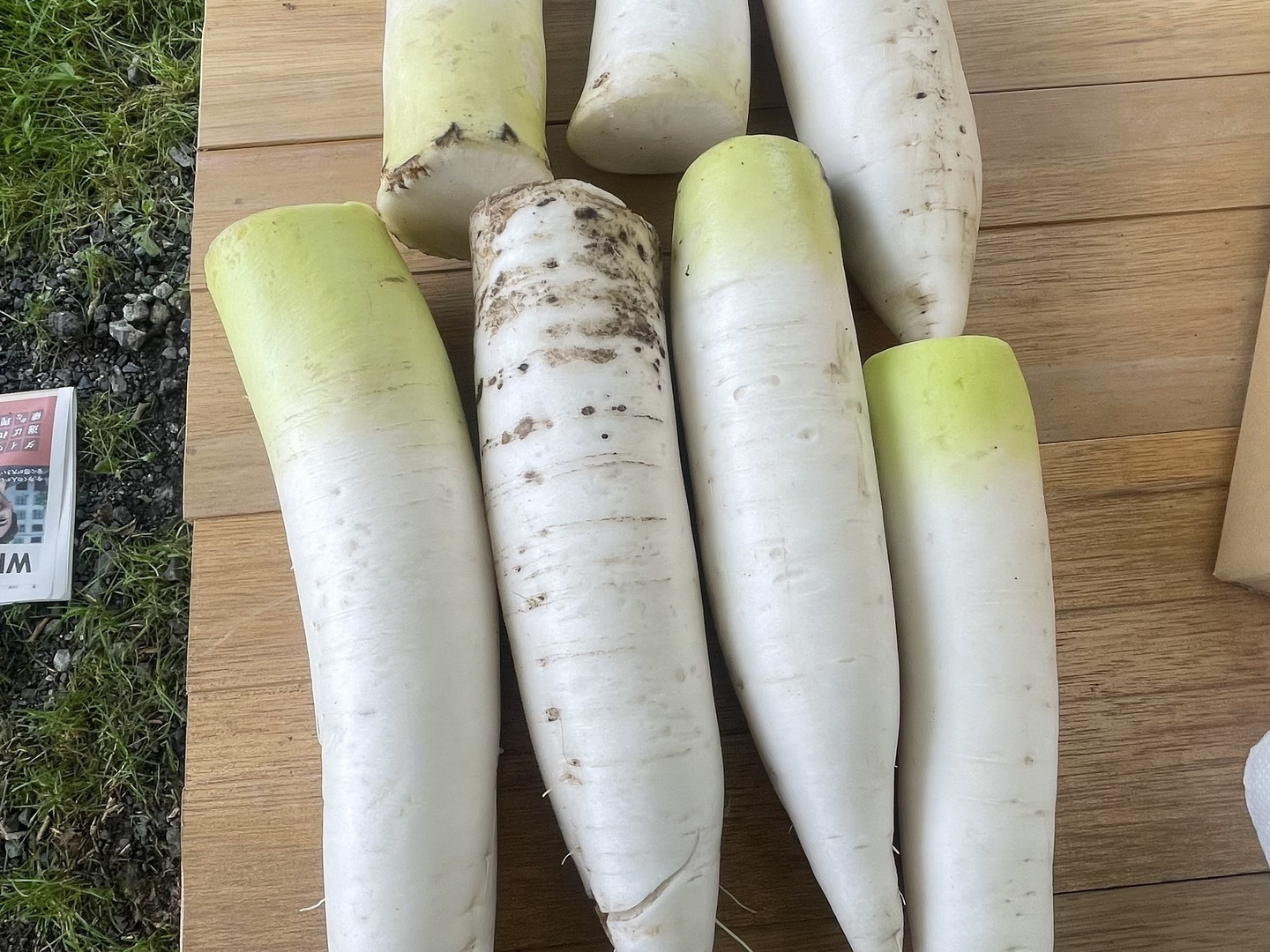 重量過多、曲がり、割れ、皮剥け、病害虫痕等がありの大根です。