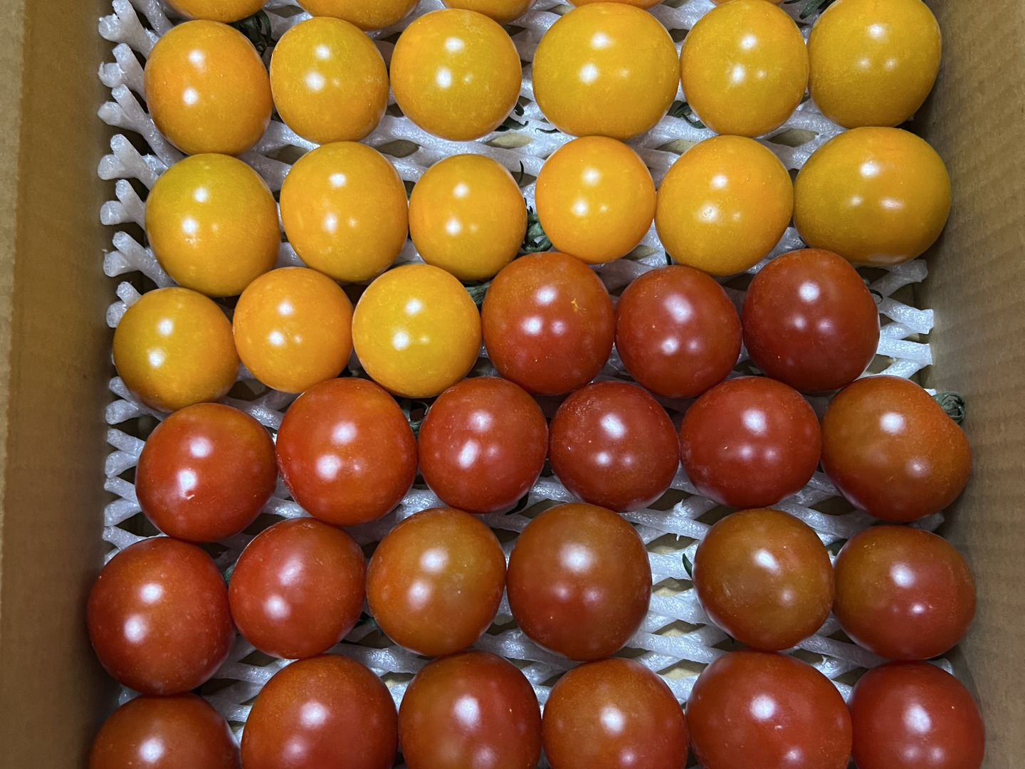 完熟の状態で収穫するちかミニトマトーーー【赤】と【黄】のミックス。