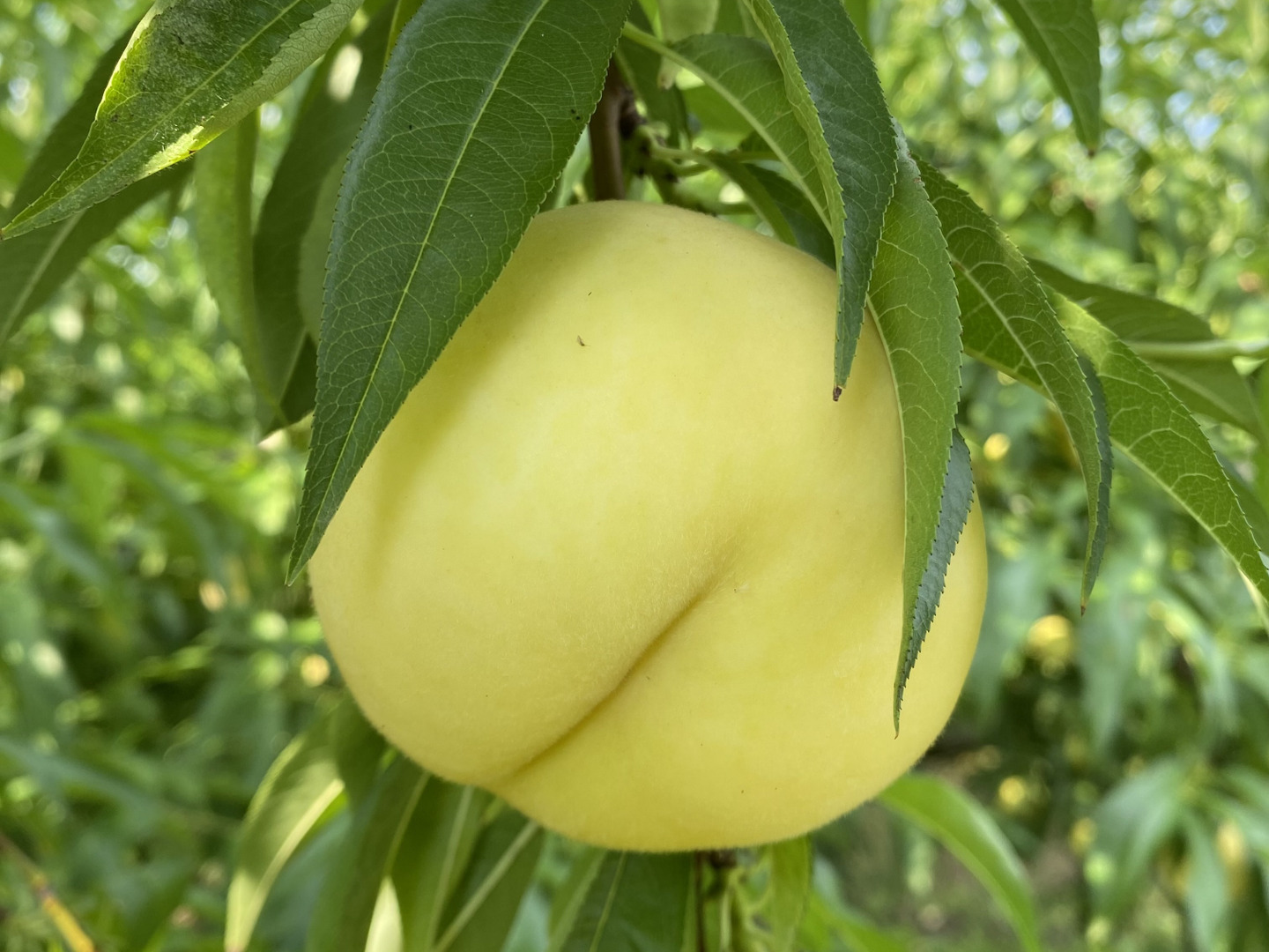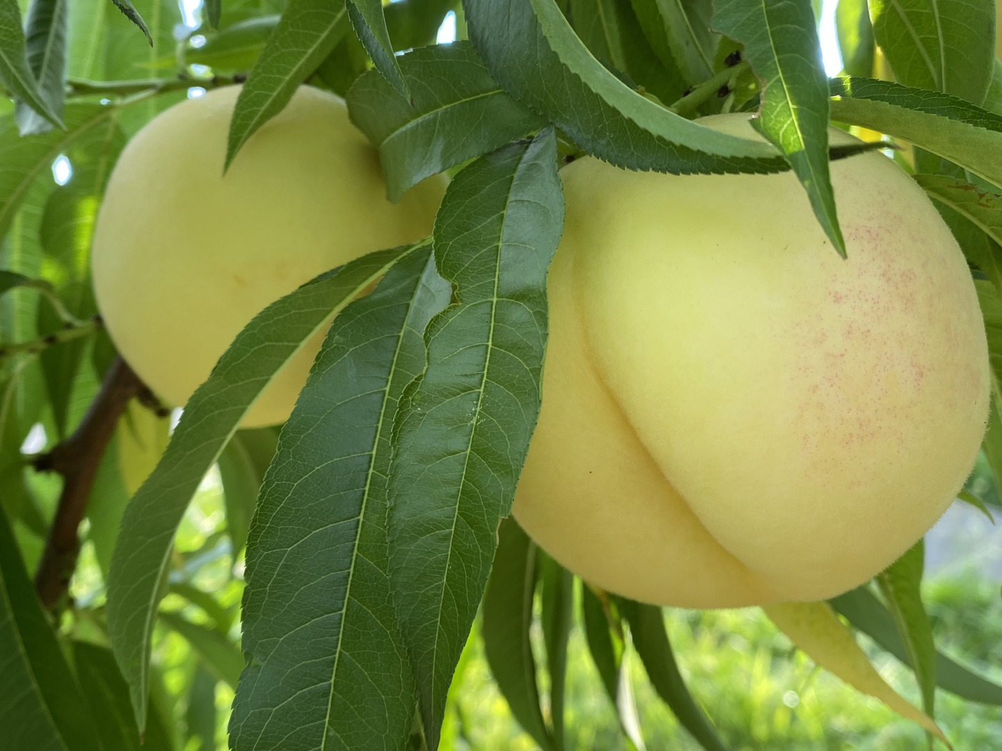 本来、加工用の桃ですが今年は生食用に大きめに作ってみました!果肉は白っぽく、硬いうちも香りよくコンポートなどにも向いています!完熟になると柔らかくなり濃い桃のジュースのような甘味と酸味が口いっぱいに広がります♡