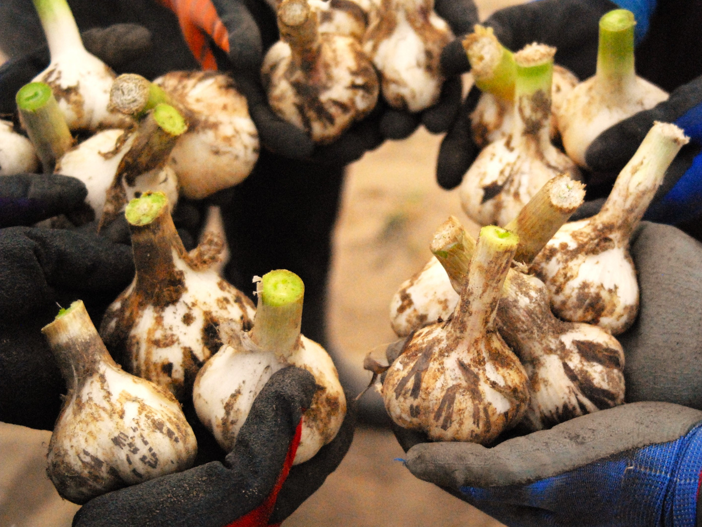 北東北では一般的にホワイト六片種と呼ばれる、寒い地方特有のにんにくが栽培されています。農園晴晴もホワイト種を若取りした粒ぞろいのよいにんにくをご愛顧いただいています。