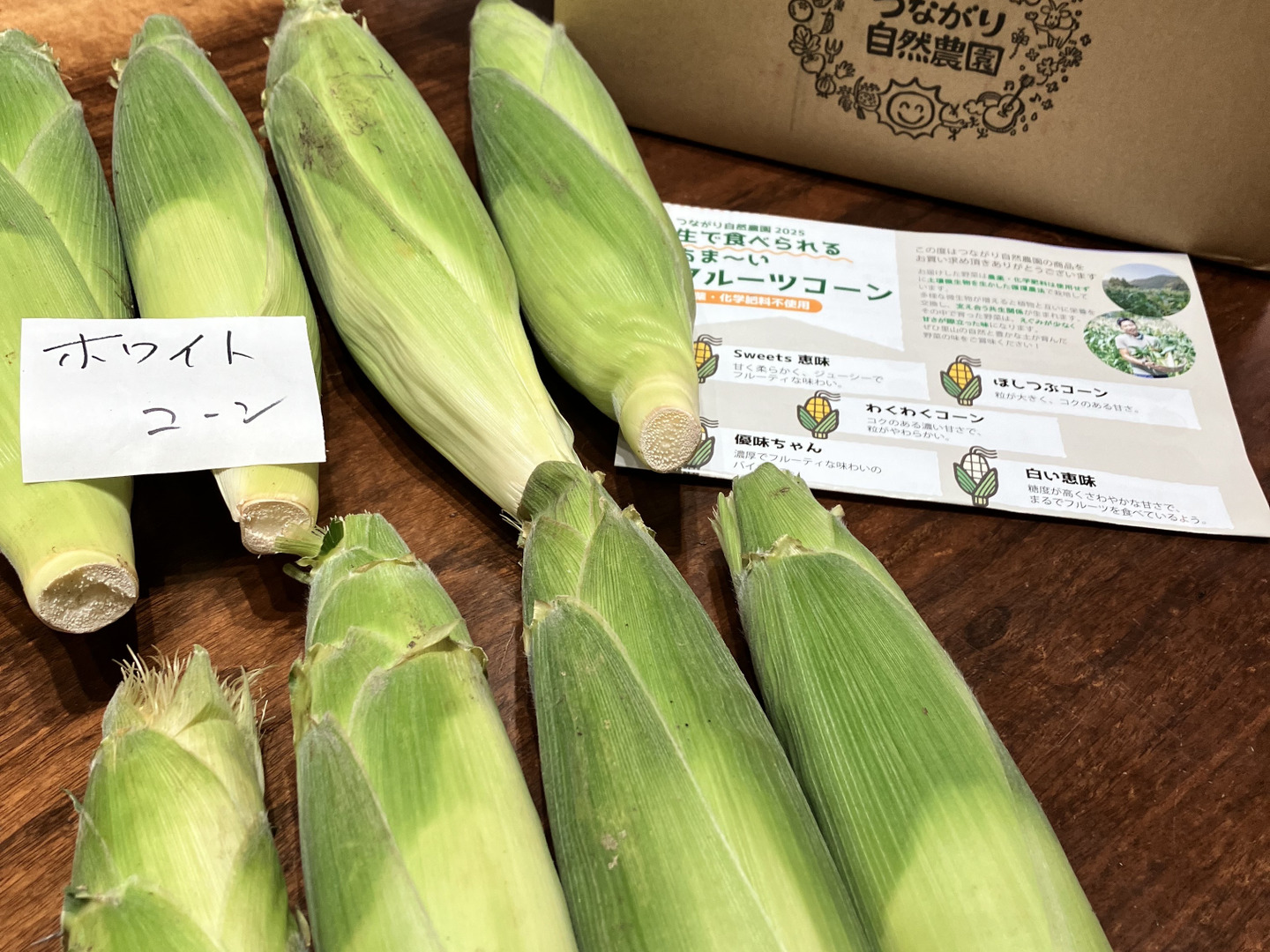 白いフルーツコーンは皮が薄く、生でカブっと食べれば、すっきりとしたさわやかな甘さが口いっぱいに広がります。