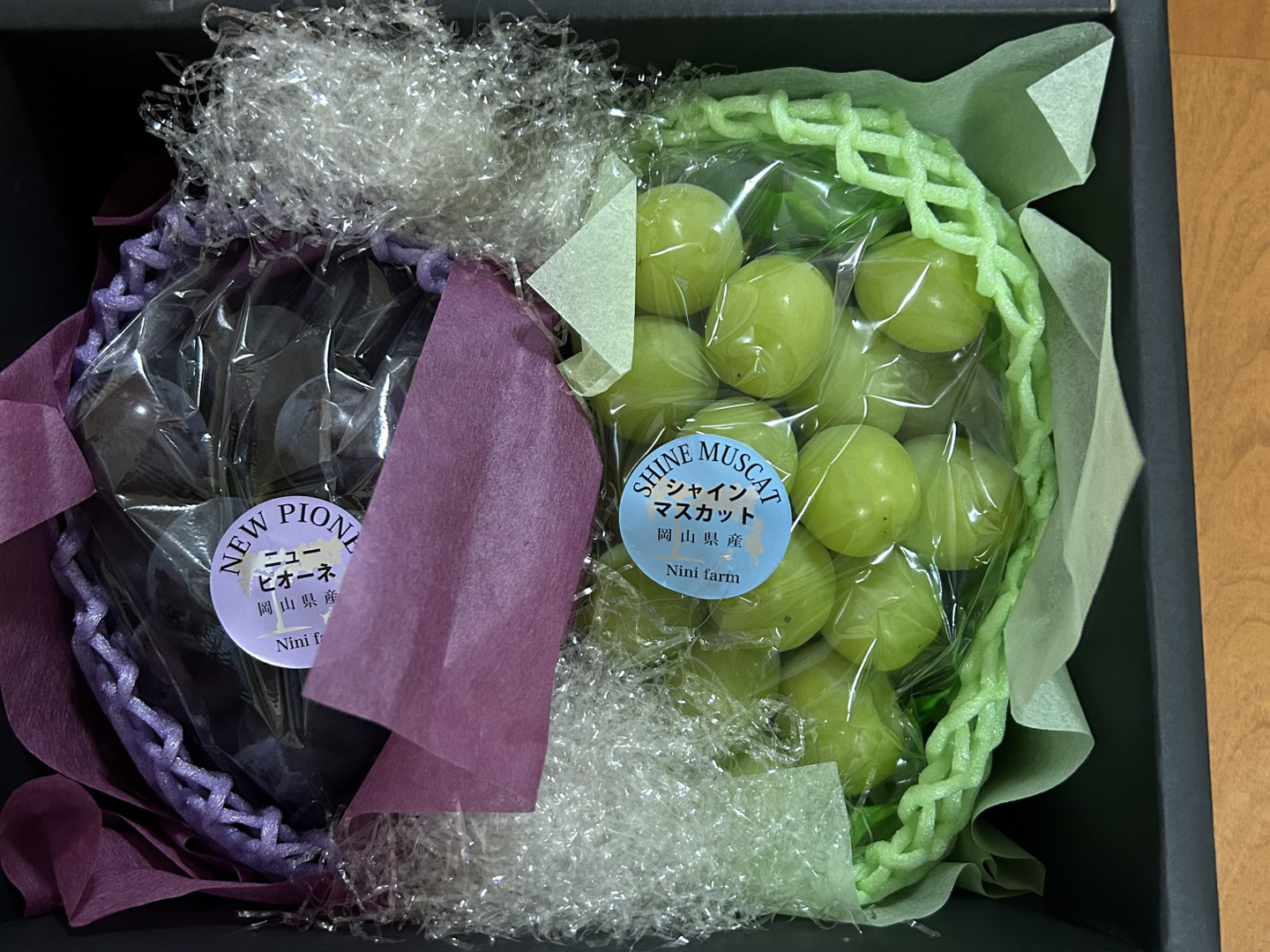 【温室ハウス栽培】 こだわりの高品質ニューピオーネ&シャインマスカット2房計約850g  秀品ランク岡山県産(熨斗対応可) 【夏ギフト】 ユーザー投稿
