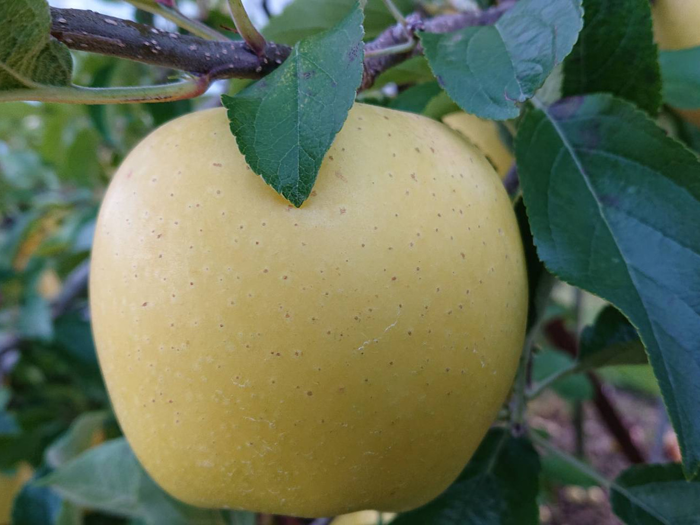 収穫してま~す。「シナノゴールド約3kg入り」スタッフお薦め・ ゴールデンデリシャスと千秋の交配種/2品種の良い所どり・瑞々しく 「シャリ感最高」です。