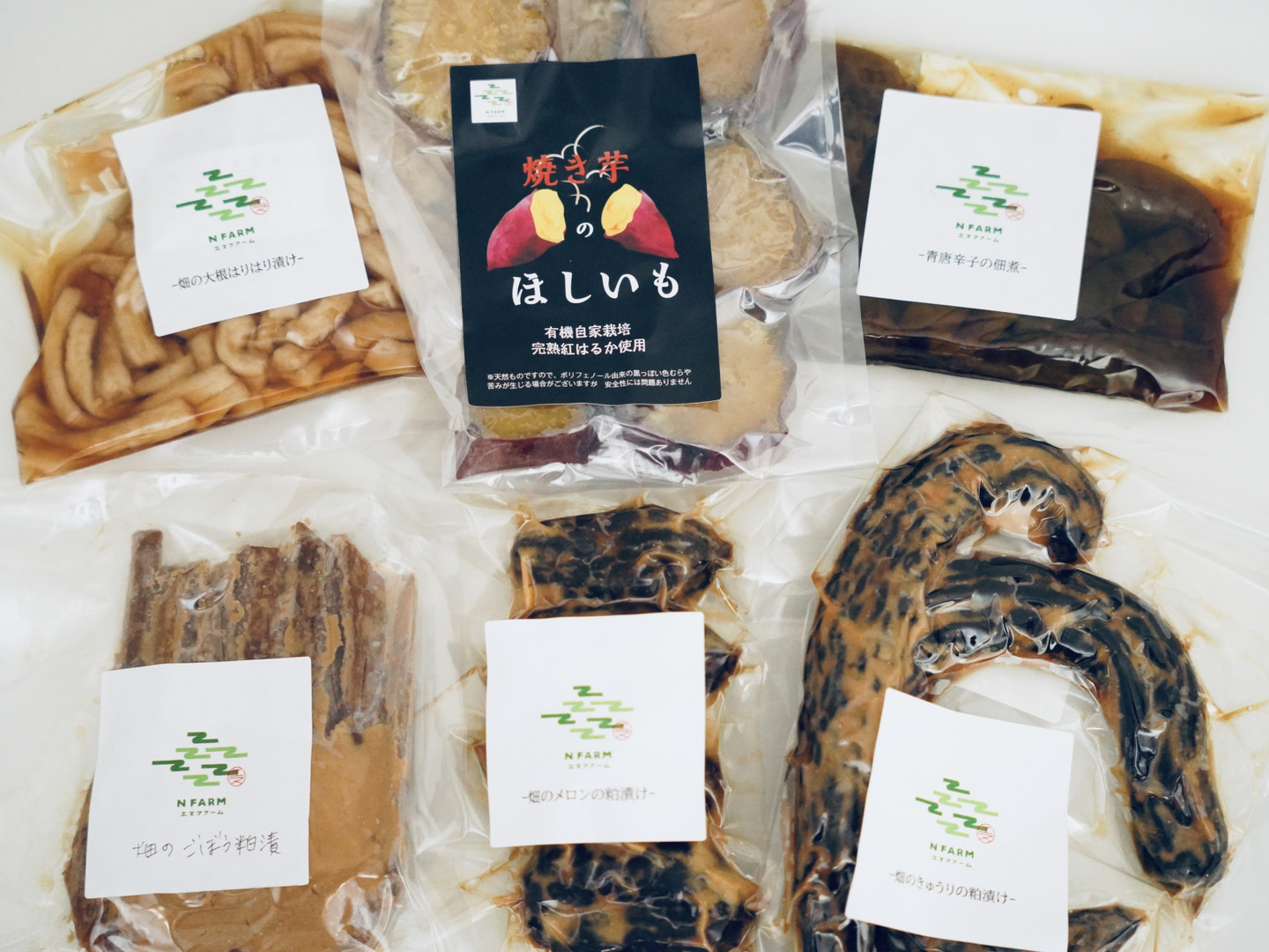 栽培・加工・販売を一社で完結する6次産業を目指す「Nfarm」で採れた野菜の無添加加工品セット。