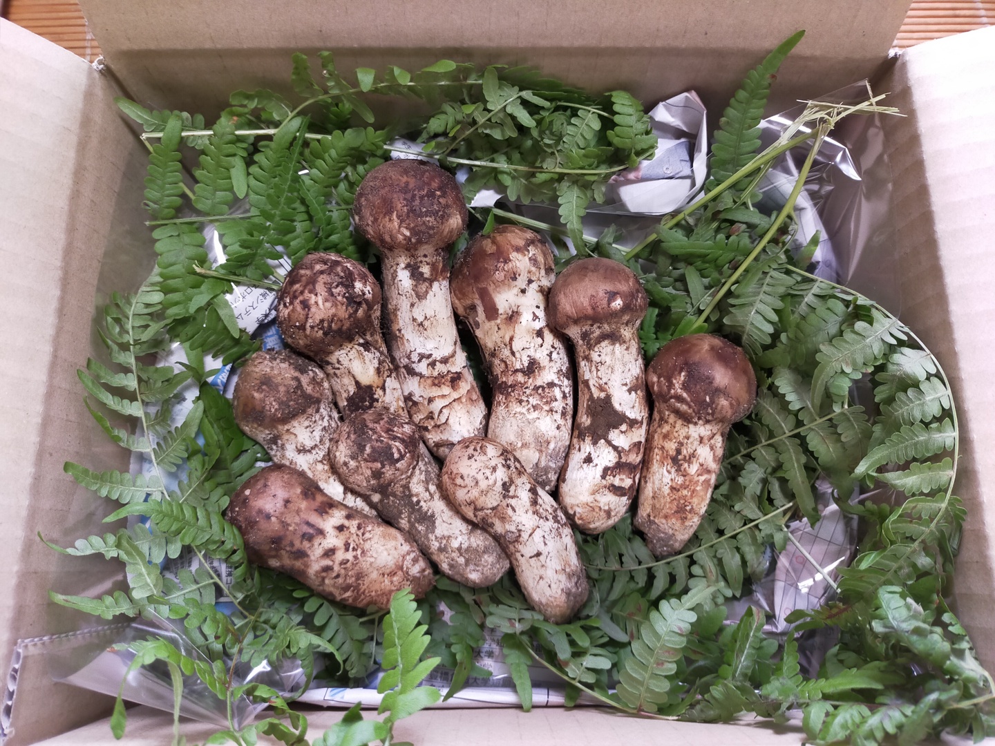 ・梱包ですが段ボールの中に新聞紙をクッションとして入れ、松茸をシダ又はヒノキの葉で包み発送します。
