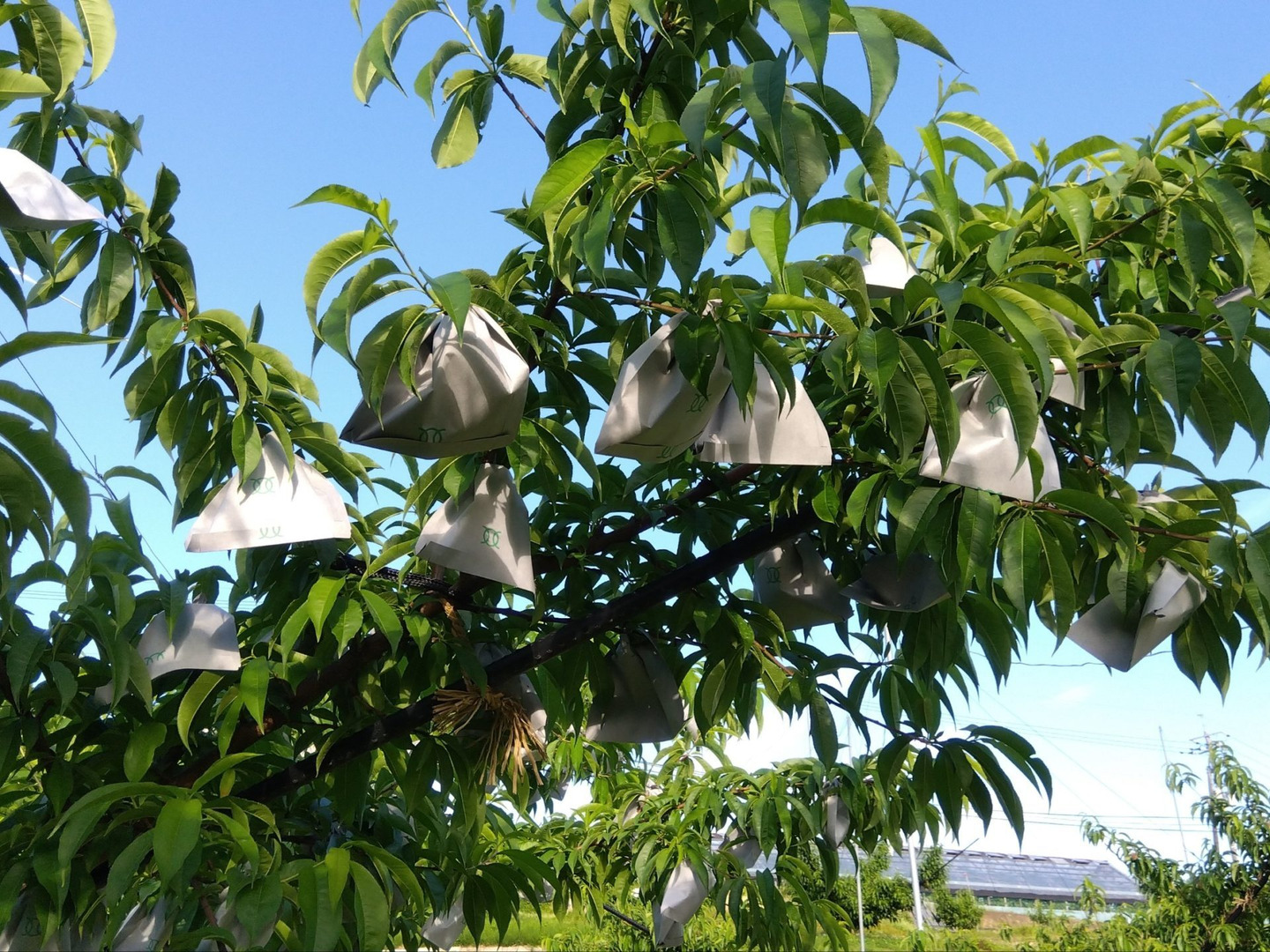 たっぷりのお日様を浴びた桃の木が、その葉で作った栄養分を桃の実にしっかり蓄えることができて初めて美味しい桃になります。