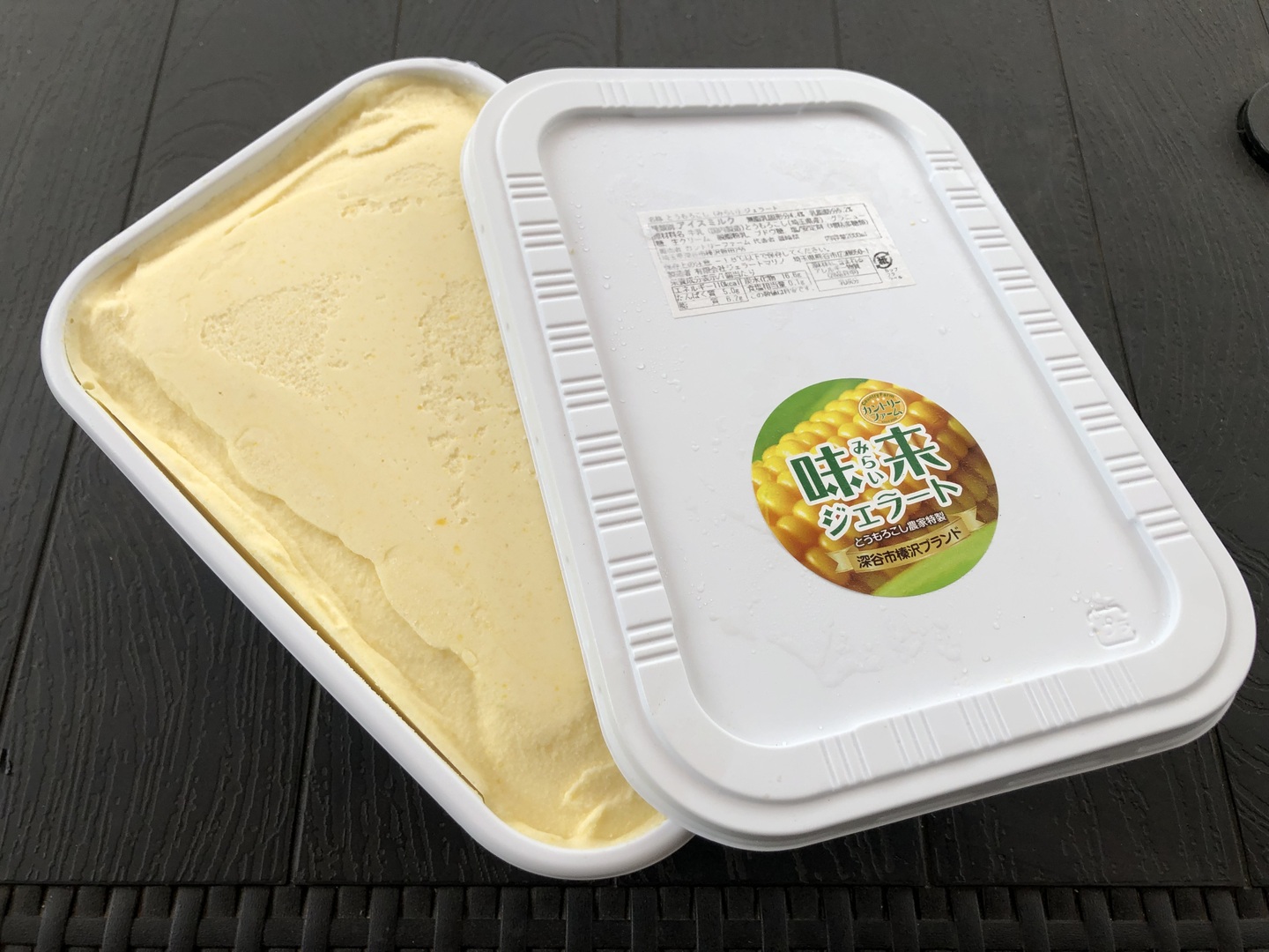 収穫したトウモロコシ(味来)をその日のうちに粒取りをして冷凍保存。その後ジェラートに加工したので、美味しさ抜群❣️