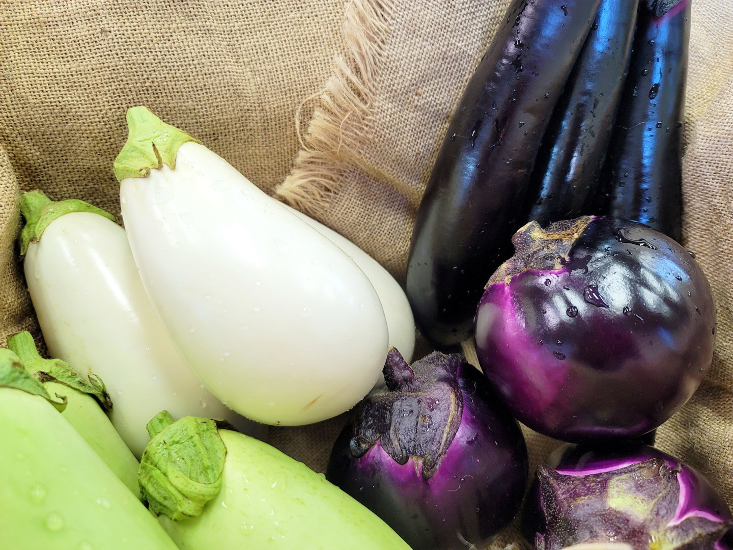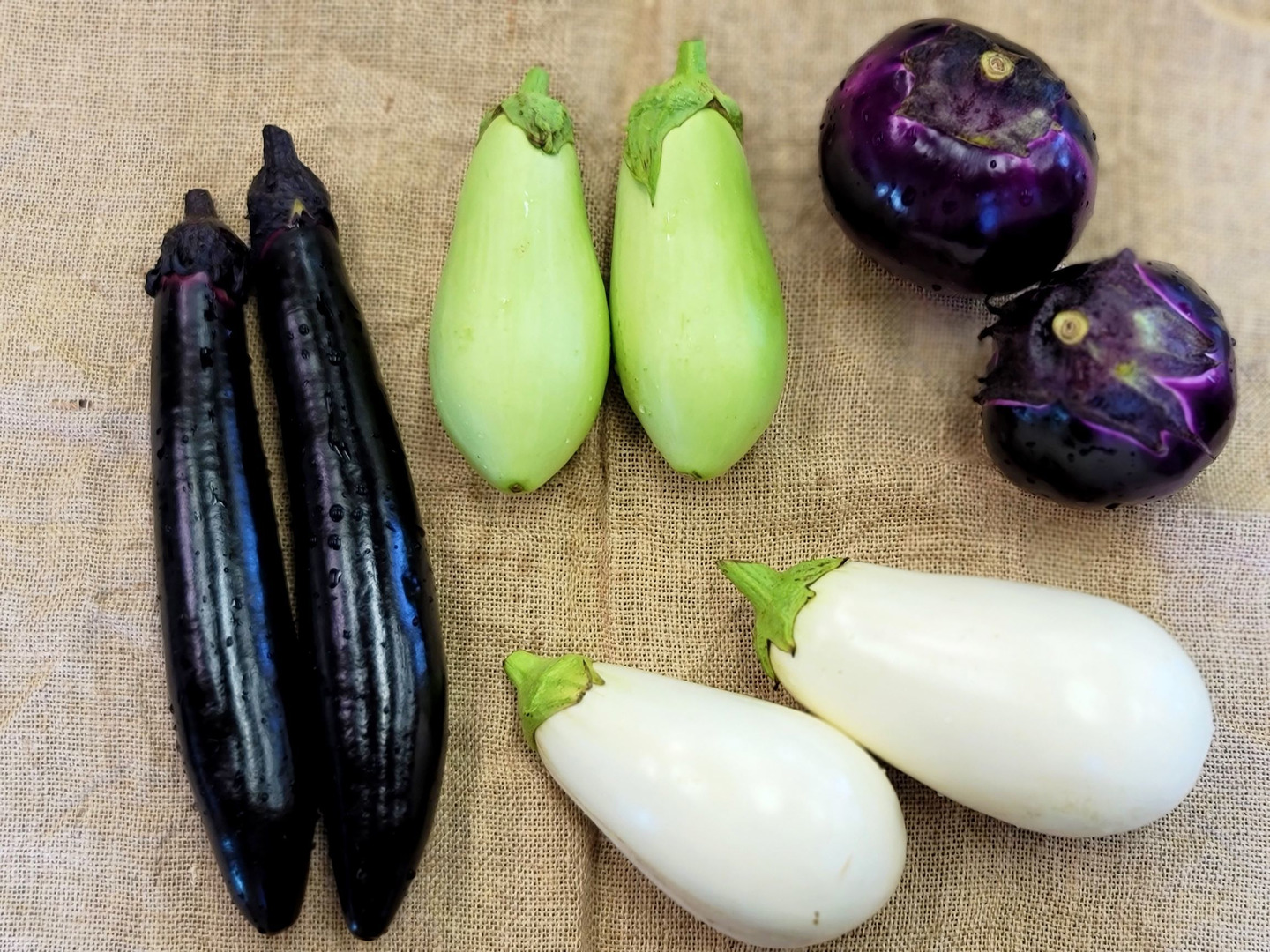 有機ナス4種×約2本ずつ/有機もちとうもろこし5本