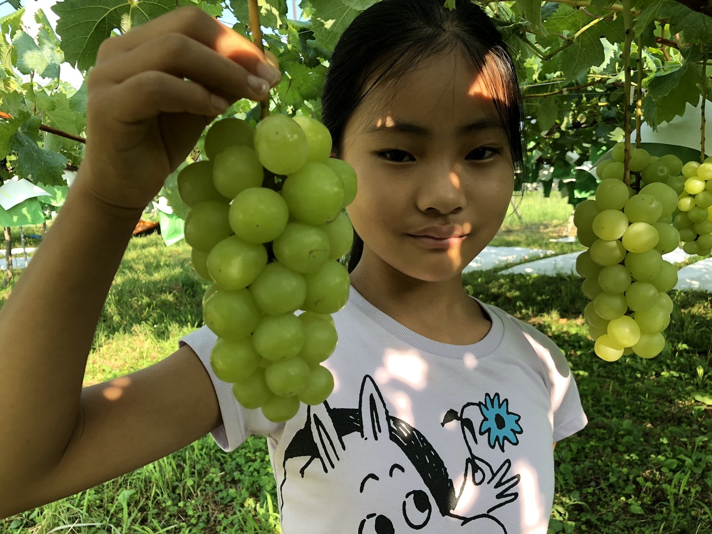 2017年と2018年春に植えたシャインマスカット、マスカサーティーン。化学肥料を用いず、堆肥と自家製ぼかし肥料のみで時間を掛けて育て、慣行農法よりも化学合成農薬使用成分回数を約68%減らして収穫を迎えることが出来そうです
