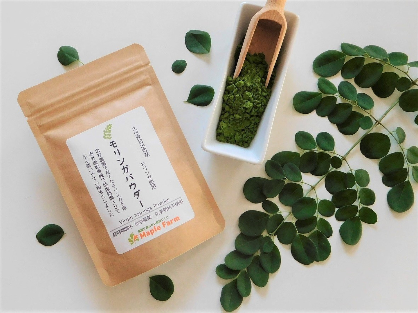 商品について あわせ買い対象 同生産者の別の「あわせ買い対象」商品と一緒にご注文いただくと、送料をまとめてお届けできる場合があります。 生産者からのお知らせ メール便発送商品を複数ご購入希望のお客様へメール便(クリックポスト)発送商品は、同じ商品であってもシステム上【1点ごと】に送料が360円かかります。注文画面にて送料を必ずご確認ください。また、複数のご注文や、他の商品と同梱をご希望の場合は専用の注文ページを作成致しますので、遠慮なくお問い合わせ下さい。なお、複数ご注文頂きました場合でも、1点ごとに送料がかかる旨の確認連絡はしておりませんので、予めご了承くださいませ。 もっと見る 内容 モリンガ粉末30g×1袋 重量・容量 約30g 発送 クリックポスト 送料 ¥ 常温便 + ¥ 0 数量1点ごとに送料が発生します。 種別 加工品 ドライフード 野菜 ハーブ モリンガ 産地 大分県 特定原材料 なし 農薬化学肥料不使用 野菜 加工品 ドライフード モリンガ 大分県x野菜 大分県x加工品 大分県xハーブ 大分県xドライフード 大分県xモリンガ 商品説明 海と山に囲まれた自然豊かな大分県日出町(ひじまち)で栽培期間中農薬・化学肥料不使用で栽培されたモリンガ<和名:ワサビノキ>の粉末です。※2025年10月より仕様変更:1年目の若木の葉→2年目以降の越冬した木の新葉【奇跡の木】モリンガは北インド原産の植物で、栄養価の高さから「奇跡の木」「緑のミルク」「薬箱の木」とも言われており、体内では生成できない必須アミノ酸9種類を全て含んだ今話題のスーパーフードです。2007年には国連の世界食糧計画に採用され、飢餓を救う食物として推奨されています。特にモリンガの葉には90種類以上の栄養素、300種の病気を予防する効能・効果があるとされ、インドの伝統医学「アーユルベーダ」でも昔から重宝されてきました。美貌を保つ為、あのクレオパトラも愛用していたそうですよ♪特に多く含まれる栄養素は鉄分、カルシウム、マグネシウム、食物繊維、葉酸、ポリフェノール、ビタミンE・B2、ギャバ、亜鉛などです。【鮮度が落ちやすいモリンガはパウダー摂取がおすすめ】そんな毎日摂りたいスーパーフード「モリンガ」ですが、非常に鮮度が落ちやすく、収穫すると熱をもち発酵が始まってしまいます。その為、生の葉はなかなかお目にかかりません。庭にモリンガを植えている方以外は生の葉を入手するのは難しいので、手軽で簡単・長持ちするパウダーがおすすめです♪【栽培から加工まで一貫生産】当園ではモリンガの栽培から乾燥・粉末加工、袋詰めまで全てを行っており、鮮度が落ちないうちに加工する事が可能です。収穫されたモリンガの葉は、新鮮なうちに洗浄し薬剤を使用せずに消毒(貝殻焼成カルシウム使用)してから低温で乾燥していますので、豊富な栄養素を壊すことなく色鮮やかな粉末に仕上がります。加熱不要で、お飲み物やお料理にそのままお使い頂けますよ◎【摂取量の目安】栄養価が高いので1日の摂取量は1.5g~3gでOK!お飲み物やお料理に少し入れるだけで栄養価が上がり、全てのお料理がスーパーフードに♪毎日の健康と美容に、ぜひお役立てください。30g×1袋(チャック付き)をメール便でご自宅のポストへお届けします。【こんな方におすすめ】手軽にバランスよく栄養を取りたい方。野菜不足と感じている方。外食が多い方。忙しくて朝食を食べていない方。インスタント食品が多い方。【おすすめの召し上がり方】味は抹茶とほうれん草の粉を混ぜたような味で、ワサビノキと言われるように後味がほんの少しピリッとします。水に溶いて飲むのが一番シンプルで、モリンガの味をダイレクトに味わえますが、少し青臭く感じる場合は牛乳や豆乳がおすすめです♪その他↓・スムージーなどのお飲み物やヨーグルトに。・クッキーやパンケーキなどの色付けに。・ポタージュスープやシチューに。・ポテトサラダやドレッシング・マヨネーズに。・パスタソースに。・アイスクリームに。ご購入頂いた方には【モリンガジェノベーゼソース】の簡単レシピ付き♪【ご確認ください】※メール便発送商品は、1セットごとに送料360円がかかってしまいます。複数セットや、他の商品と同梱をご希望の場合はご注文前にお問い合わせ下さい。※妊娠中の方、通院中の方、人工透析を受けられている方は、お召し上がり前に医師とご相談の上お召し上がり下さい。※70メッシュのふるいにかけていますが、実際はもっと細かい粉末になっています。(メッシュ数は大きくなるほど粉末は細かくなります。小麦粉は約100メッシュです。)※画像はイメージです。※具体的な効能を記載するのは薬機法違反となる為、知りたい方はネットで調べてみて下さいね。【原材料表示】名称:モリンガ粉末原材料名:モリンガ(大分県産)賞味期限:期限まで3か月以上の物をお届けします。食品添加物:無し内容量:30g×1袋粒子の細かさ:70メッシュのふるいにかけています。摂取の目安:1日1.5g~3g