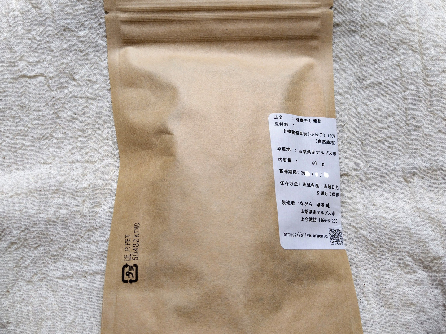 商品について あわせ買い対象 同生産者の別の「あわせ買い対象」商品と一緒にご注文いただくと、送料をまとめてお届けできる場合があります。 生産者からのお知らせ 【オリーブ製品について重要なお知らせ】ワインは順調なのですが、オリーブの実付きが悪く、壊滅的な不作となっています。残念ながら、今年はオリーブ製品の販売は以下となります。・販売なし オリーブオイル、オリーブの実、ドライオリーブ・販売あり オリーブ茶楽しみにお待ち頂いているお客様には大変申し訳ございません。・セットのご希望があればお問い合わせください。可能な限り対応させていただきます。・配送料360円の小物商品はクリックポスト(日本郵便)でのポスト投函配送になり、日時指定ができませんが、追跡は可能です。ご了承下さい。 もっと見る 内容 干し葡萄(小公子) 60g*2点セット 発送 クリックポスト 送料 ¥ 常温便 + ¥ 0 数量1点ごとに送料が発生します。 種別 果物 ぶどう その他ぶどう 加工品 スイーツ ドライフルーツ 産地 山梨県 特定原材料 なし 自然栽培 果物 加工品 有機JAS 動物性堆肥不使用 その他ブドウ ドライフルーツ 山梨県x果物 山梨県x加工品 山梨県xぶどう 山梨県xスイーツ 山梨県xその他ぶどう 山梨県xドライフルーツ 商品説明 有機JAS認証かつ自然栽培の、赤ワイン用山ぶどう系品種「小公子」ワインにするための収穫の一部を、収穫直後に種付きのままドライにしました。油・砂糖などを一切使用していない無添加です。生食用品種の大粒な葡萄と比べると粒はとても小さい品種ですが、食べると既にワインのような深い旨味と香り、自然のやさしい甘味が感じられます。生の状態で糖度26度と非常に高い出来となりました。また、葡萄の種にはポリフェノールが含まれていると言われています。種の食感も一緒にお楽しみください。内容量:60g賞味期限:2026年8月31日<配送について>日本郵便クリックポストにて発送いたします。お届け先のポストへの配達となりますので、日時指定を承ることができません。予めご了承くださいませ。1回の配送で6袋まで同梱できます。下記ラインナップ以外に複数個ご希望の場合は、お問い合わせくださいませ。---------------この他に下記セット商品がございます。30g*2袋セットhttps://www.tabechoku.com/products/16398630g*4袋セットhttps://www.tabechoku.com/products/20816630g*8袋セットhttps://www.tabechoku.com/products/20816760g単品https://www.tabechoku.com/products/16394860g*2袋セットhttps://www.tabechoku.com/products/208168 もっと見る この商品のことをお友達にもシェアしませんか ポスト シェア