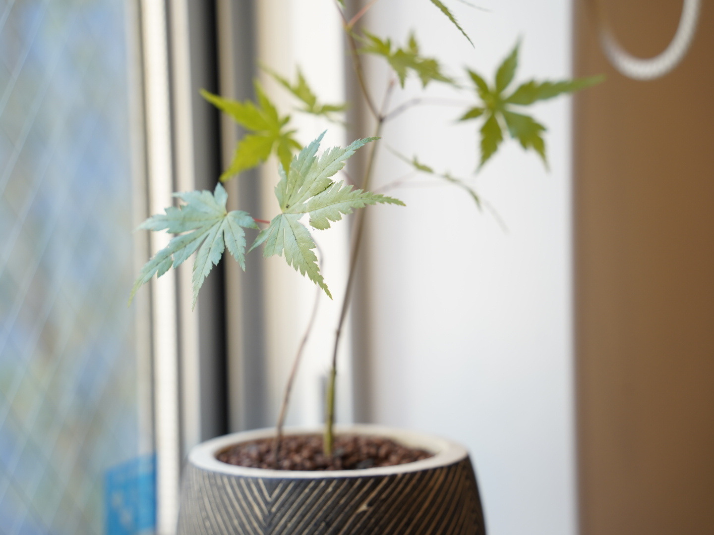 山野草ヤマモミジの苗木を、ハイドロボールを使用してミニ盆栽に仕立てました。