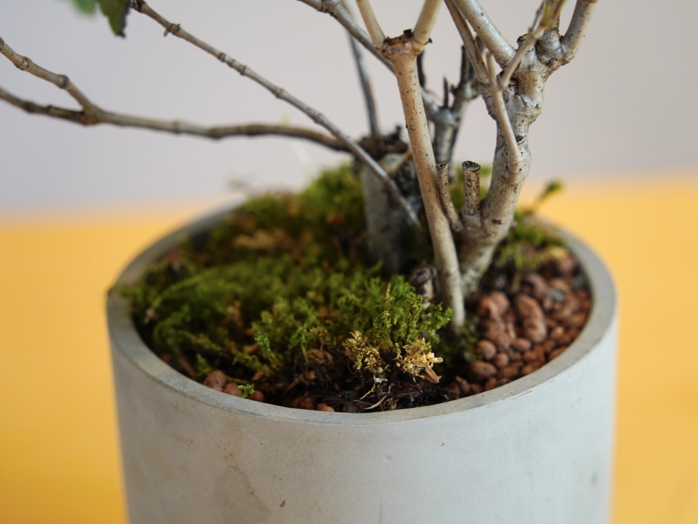 山野草オトコヨウゾメの苗木を、ハイドロボールを使用してミニ盆栽に仕立てました。