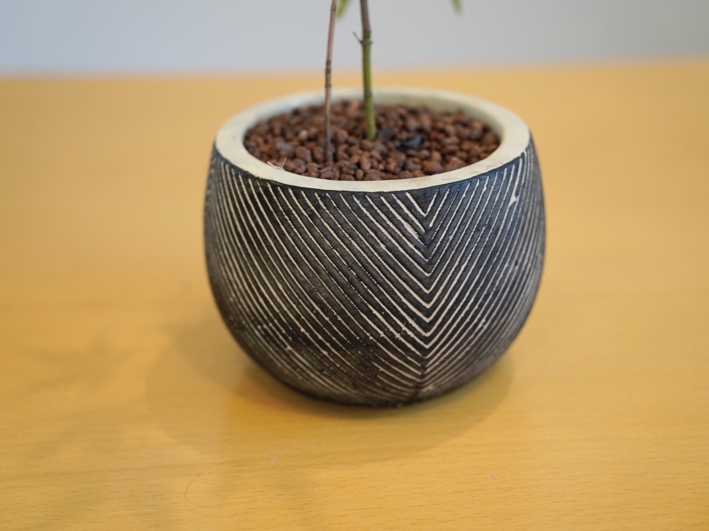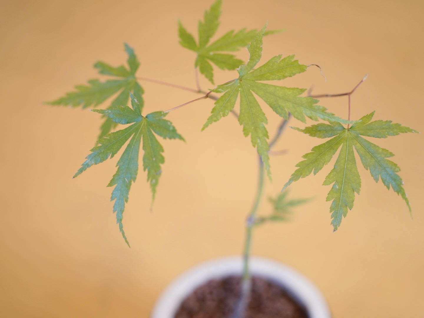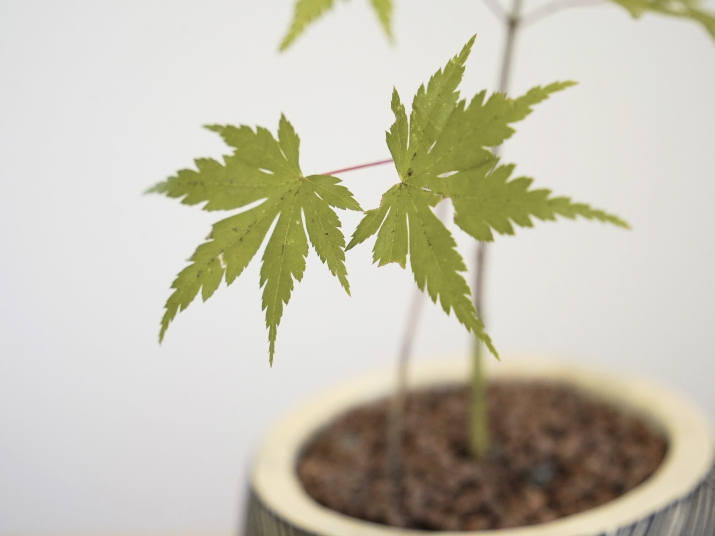 山野草ヤマモミジの苗木を、ハイドロボールを使用してミニ盆栽に仕立てました。