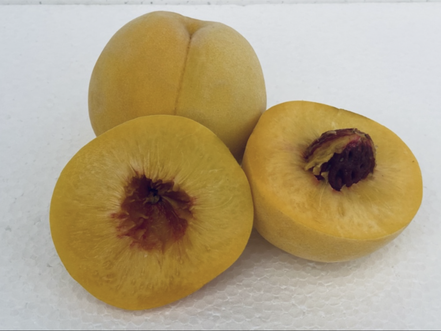 追熟が進むと、とろりとしてとろけるような食感になっていきます。しっかりした食感ととろけるような食感、両方が楽しめる品種は黄金桃ならでは!