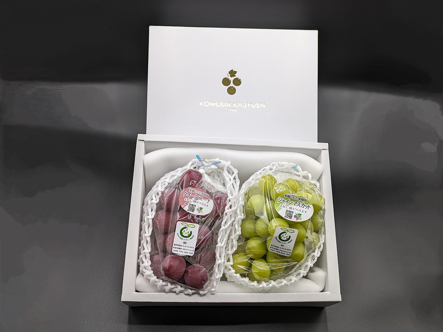 翠の爽香、紅の芳醇【プレミアムギフト】クイーンニーナとシャインマスカット (約500g×2房=約1kg)長野県認証/特別栽培相当(信州の環境にやさしい農産物認証50)