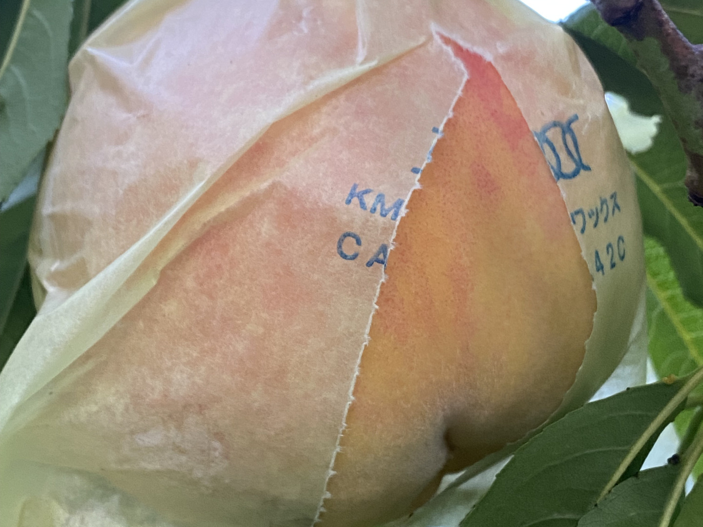 陽の光が入りやすいうすい袋をかけて栽培していますので安全です。