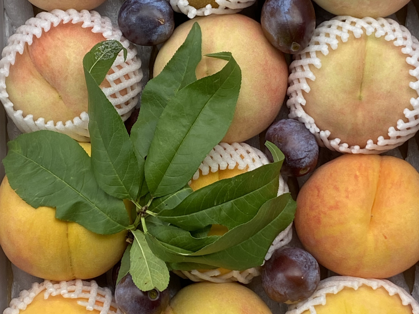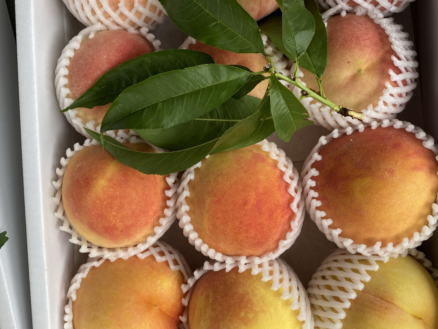 桃のセット、きれいな装飾段ボールで発送します。