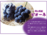 ピオーネは岡山を代表するぶどうです。大粒で濃厚な甘さにほどよい酸味があり、皮がスルッとむけて食べやすく、歯触りのよい食感と上品な風味が楽しめます。