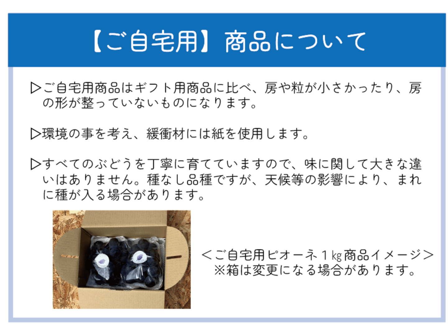 ご自宅用商品はギフト商品に比べ、房や粒が小さかったり、房の形が整っていないものになります。