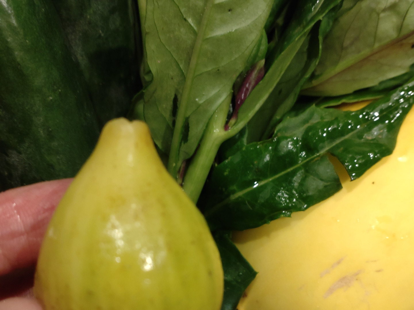 【季節の珍しい野菜セット、お買い得♪】白いちじく5個プレゼント♪金時草(水前寺菜)5本/マクワウリ1個 / 赤紫蘇5本 / 唐辛子5こ【一部訳あり】※必ず白いちじく希望とカート特記欄にご記載ください。